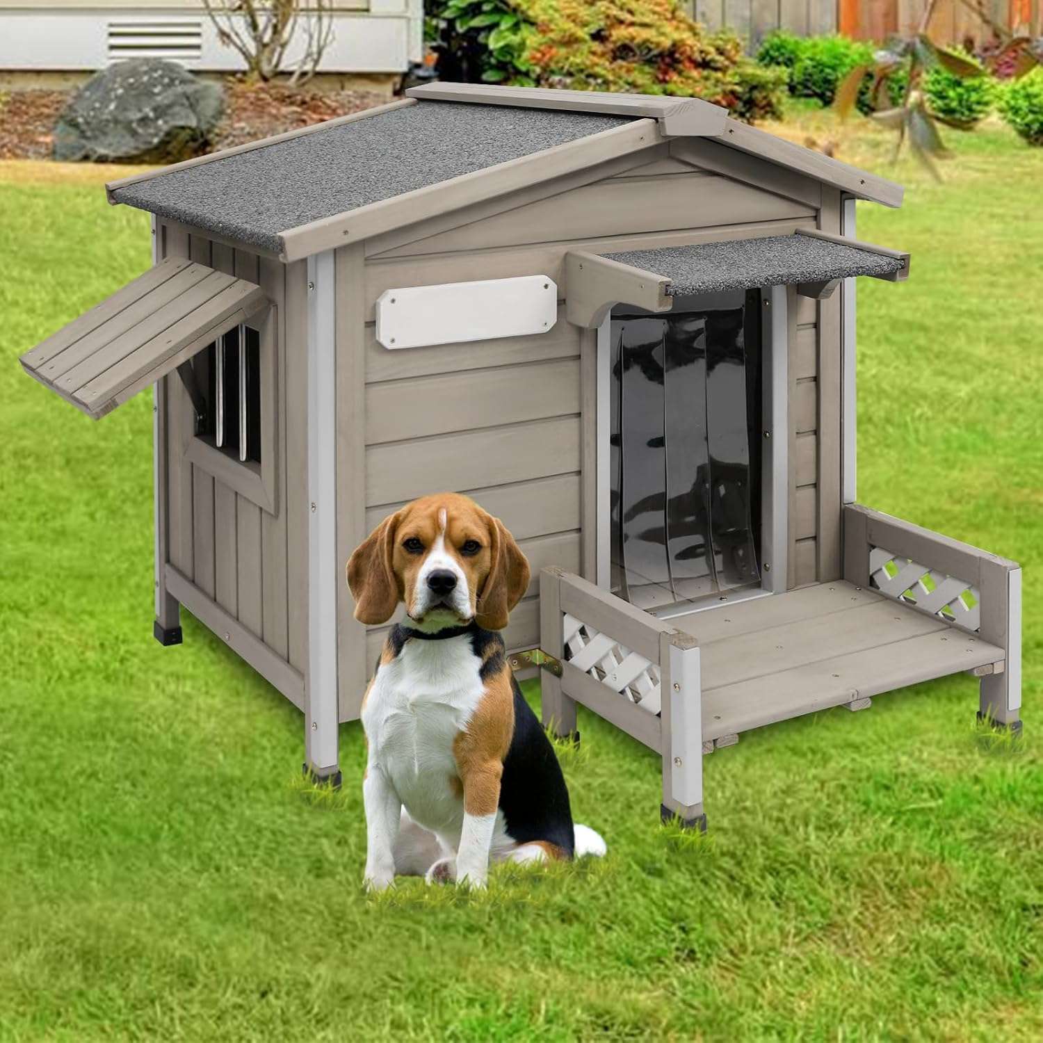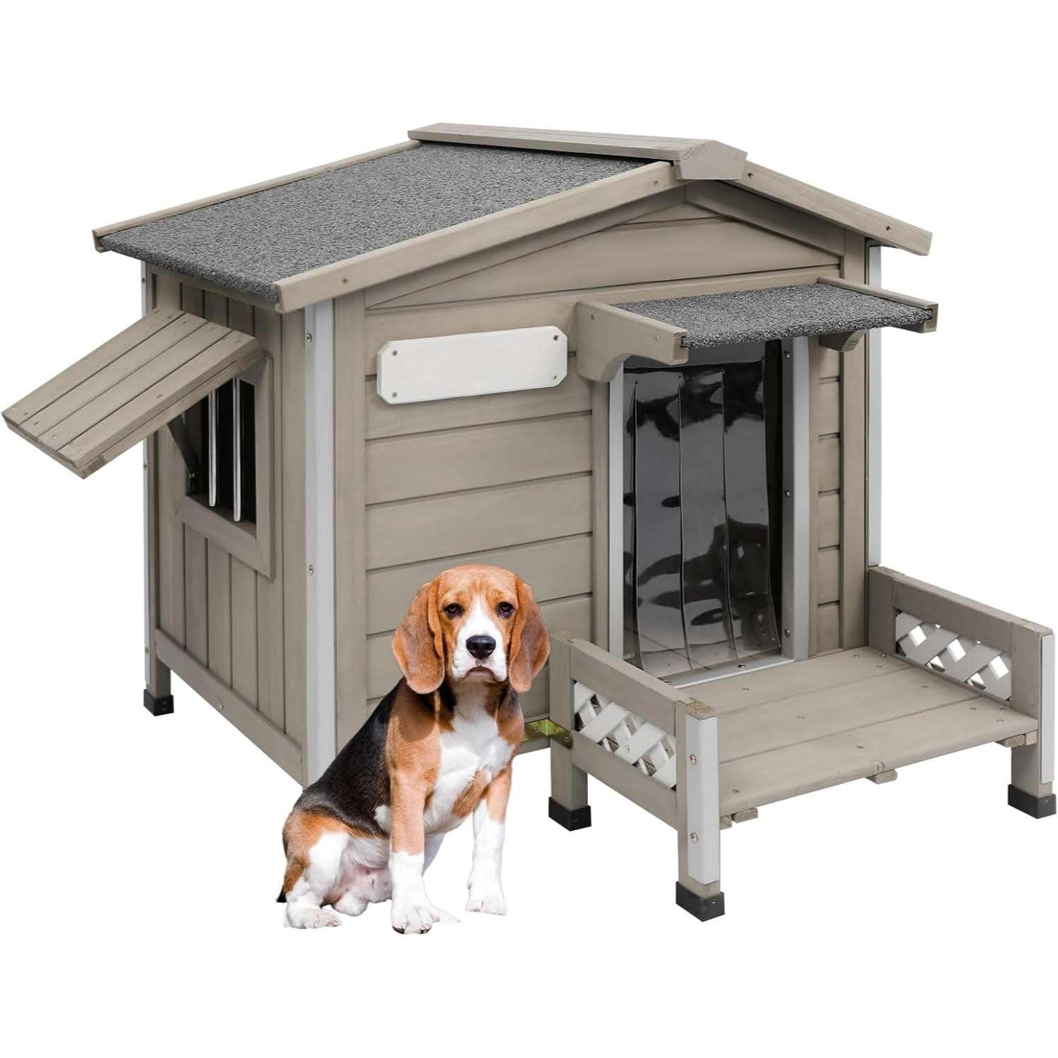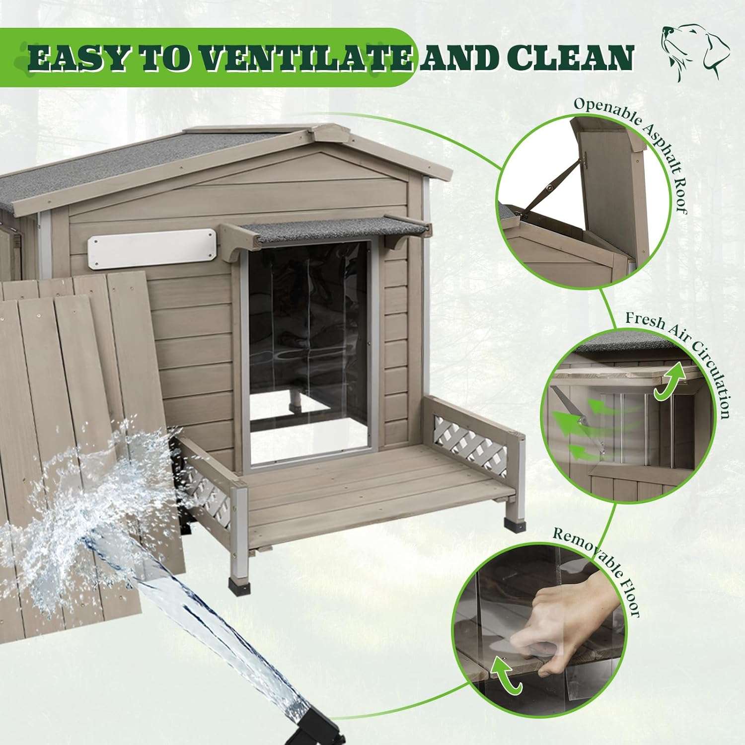Para garantizar un hogar limpio y ventilado cuenta con pequeñas ventanas y un techo que se puede abrir evitando la acumulacion de humedad en el interior Como detalles adicionales incluye unos practicos escalones para la relajacion de su mascota y una placa de identificacion unica brindando un espacio verdaderamente comodo y personalizado
