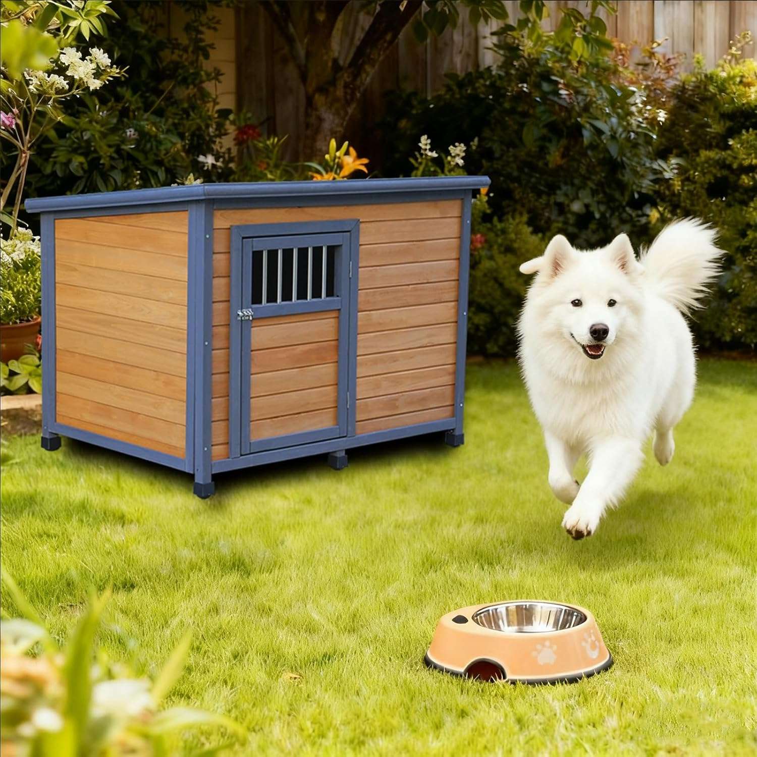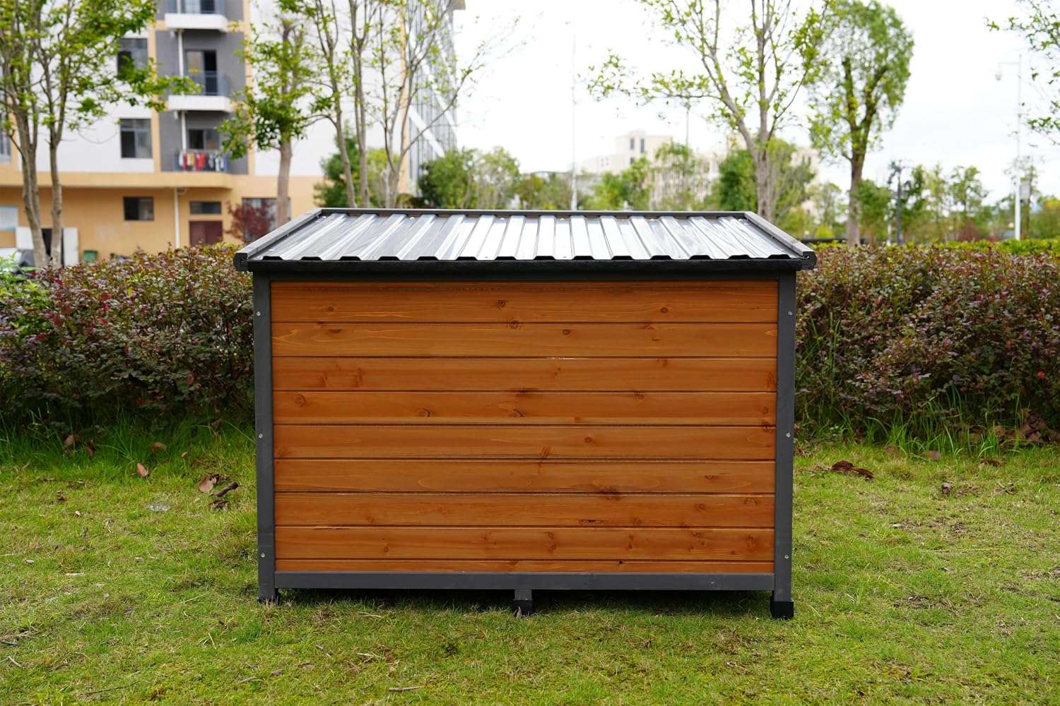 Diseñada con un techo impermeable de pvc esta casa asegura que su mascota pueda disfrutar de un ambiente totalmente seco incluso en los dias mas lluviosos El techo tiene un diseño a prueba de fugas con una pendiente de adelante hacia atras que evita de manera efectiva que el agua de lluvia penetre en el interior manteniendo el espacio siempre comodo