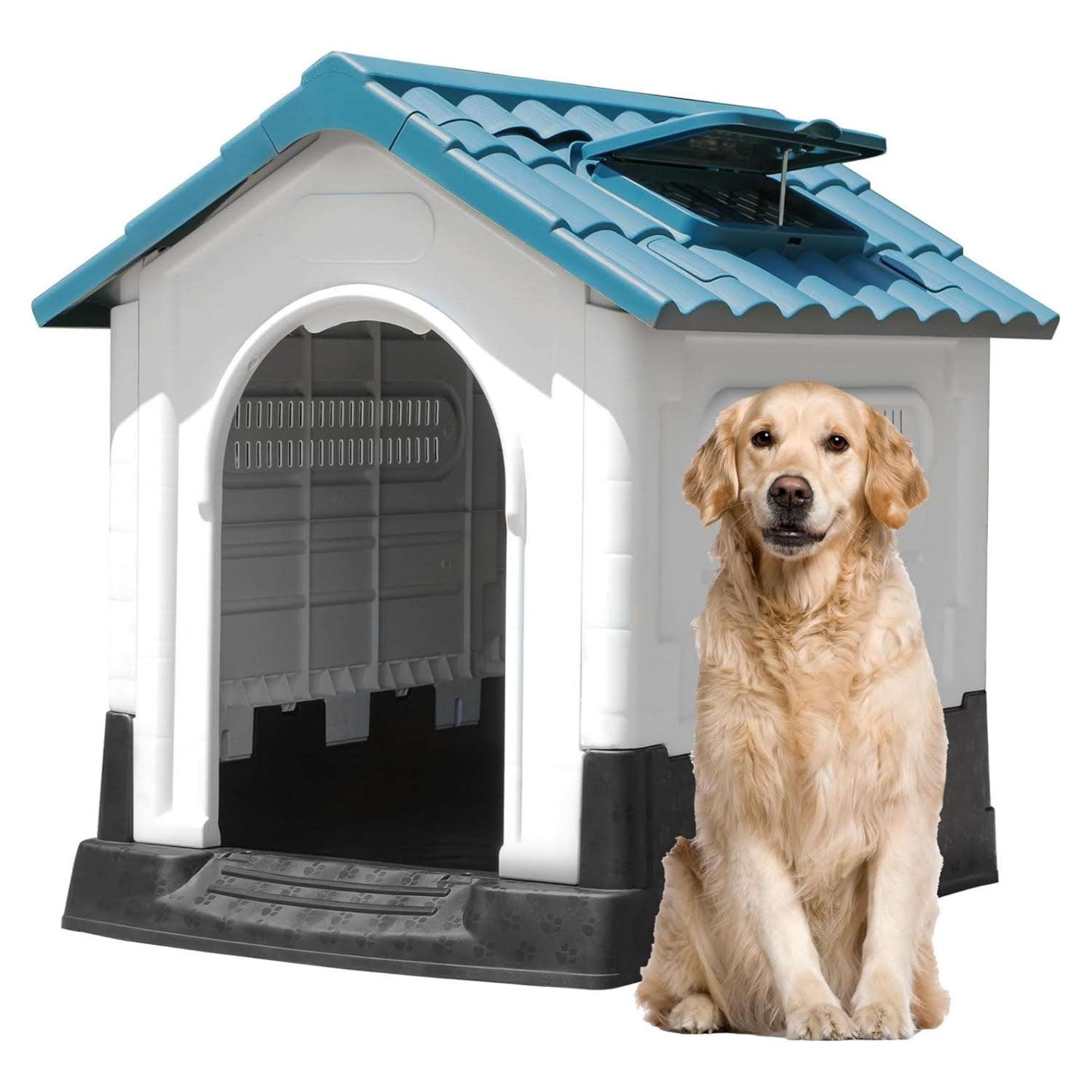 Este diseño altamente funcional y protector incorpora un techo inclinado que evita por completo que el agua se acumule durante la lluvia Para asegurar una ventilacion optima en cualquier estacion del año posee un practico tragaluz en la parte superior que se puede abrir ventanas laterales y agujeros traseros que permiten una excelente circulacion de aire manteniendo una temperatura agradable en el interior Su base elevada proporciona una resistencia superior a la humedad protegiendo a su mascota del suelo mojado o muy frio