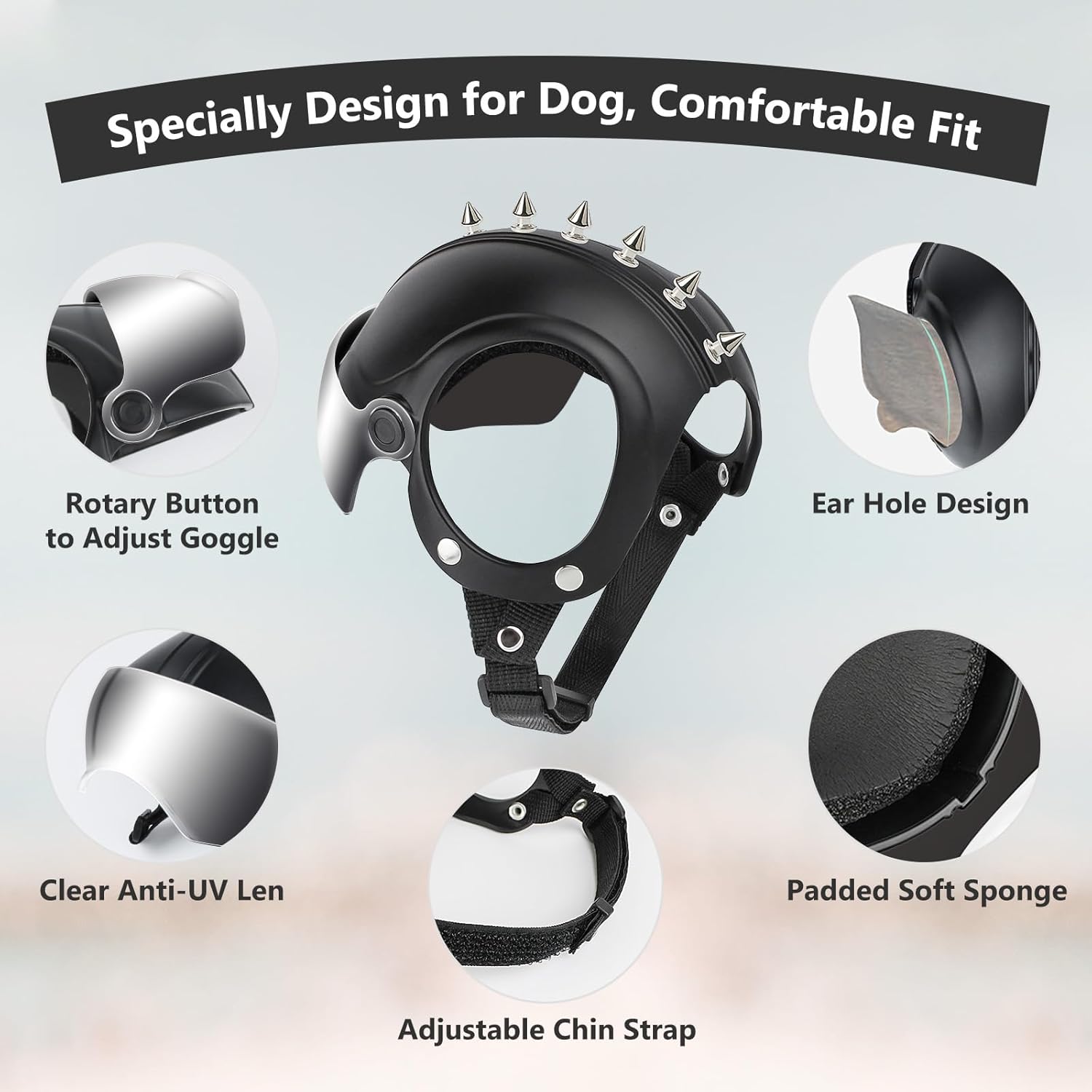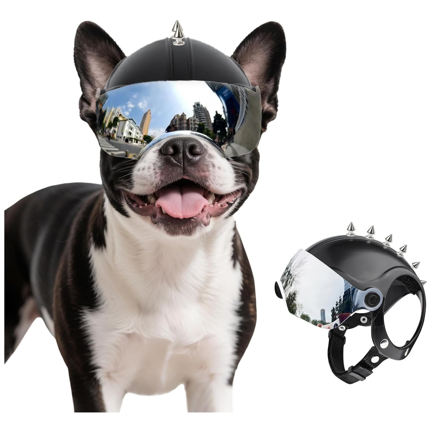 Casco Moto para Perros Pequeños con Visera UV Ajustable y Proteccion.