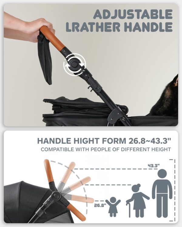Compatible para todas las edades: mango ajustable en altura Las asas del cochecito plegable para perros Zoosky se pueden ajustar de acuerdo a las diferentes demandas del usuario de 26.8 a 43.3 pulgadas de altura, compatible con niños, ancianos y adultos.