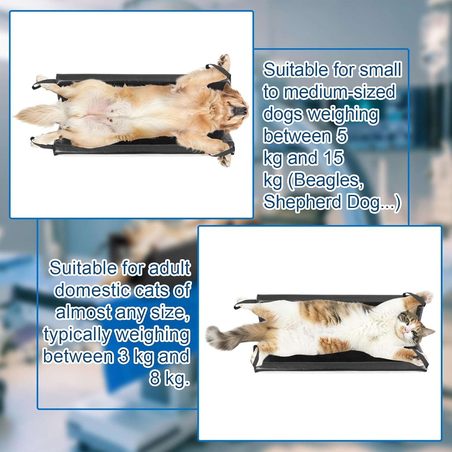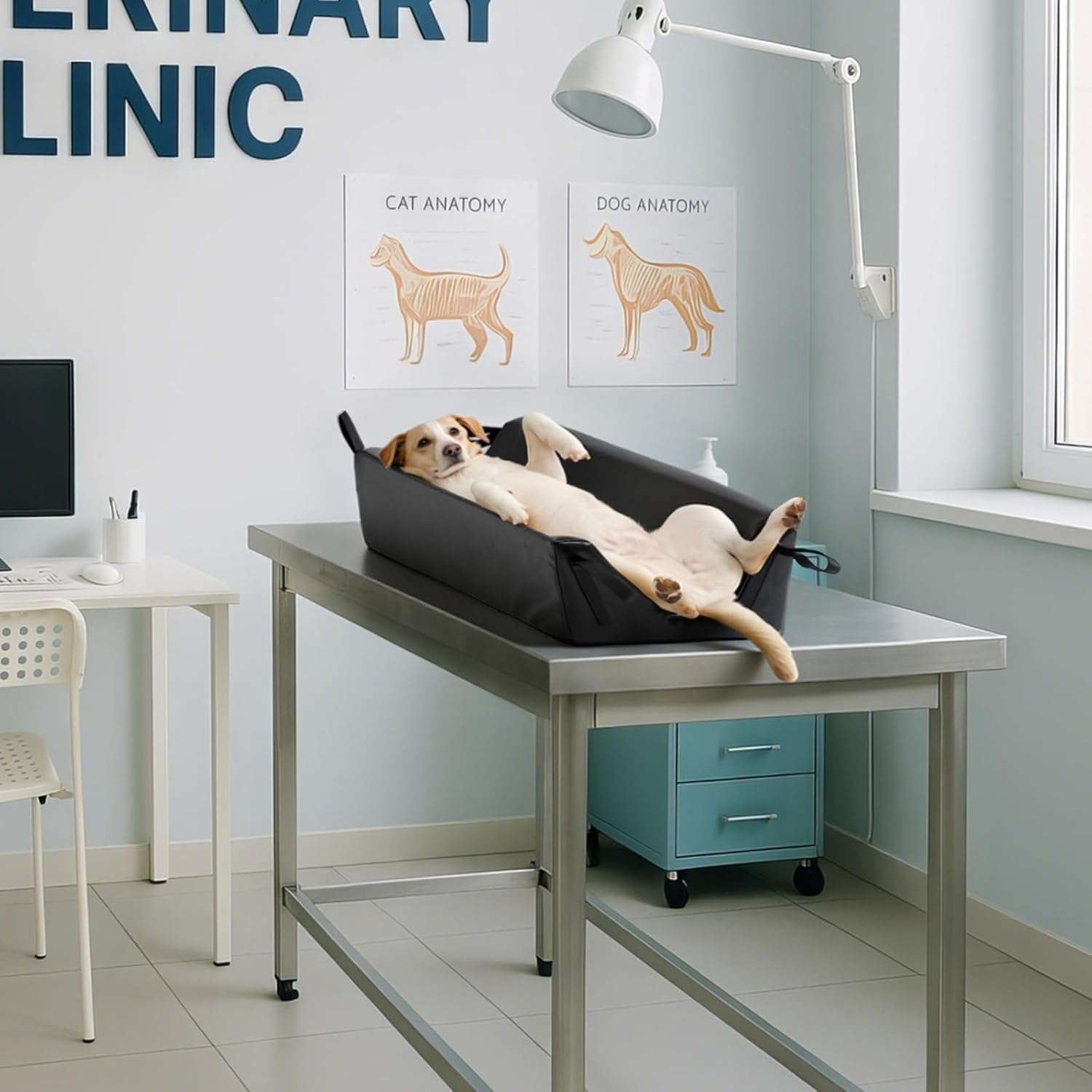 Confort y Estabilidad (Núcleo de Espuma) El interior está relleno de una esponja de espuma que ofrece firmeza para inmovilizar, pero suavidad al contacto. Esto ayuda a reducir la ansiedad del animal, manteniéndolo tranquilo y cómodo durante procedimientos que requieren quietud absoluta, como la toma de muestras o cateterismo.
