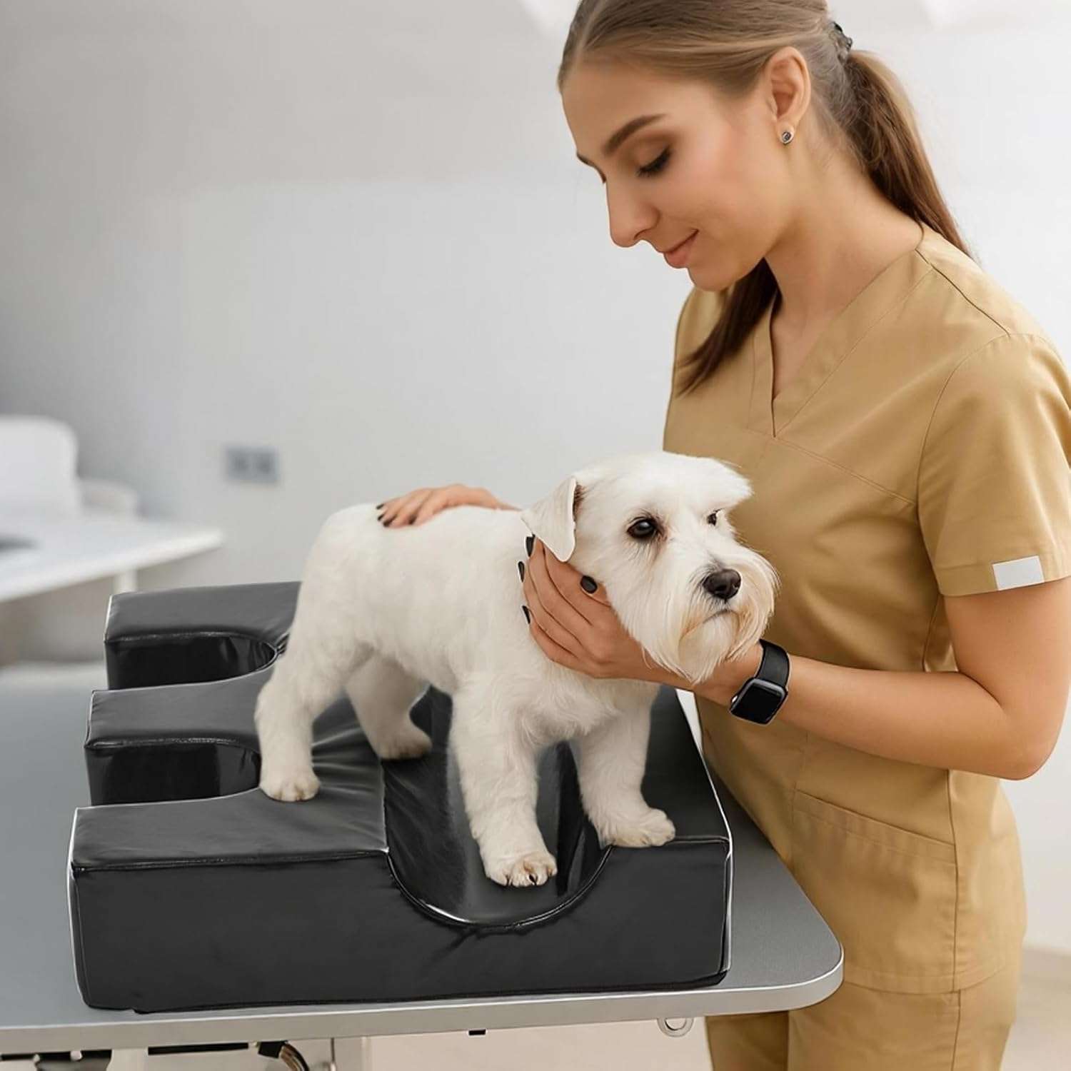 Confort que Mejora el Diagnóstico El interior está relleno de una espuma de alta densidad que logra el equilibrio exacto: es lo suficientemente firme para estabilizar al animal durante una ecografía o radiografía, pero suave al tacto para reducir la ansiedad del paciente. Un paciente cómodo es un paciente que se mueve menos.