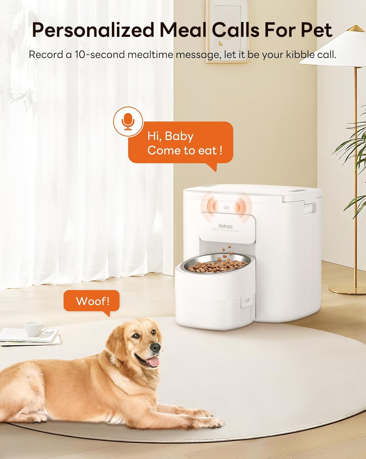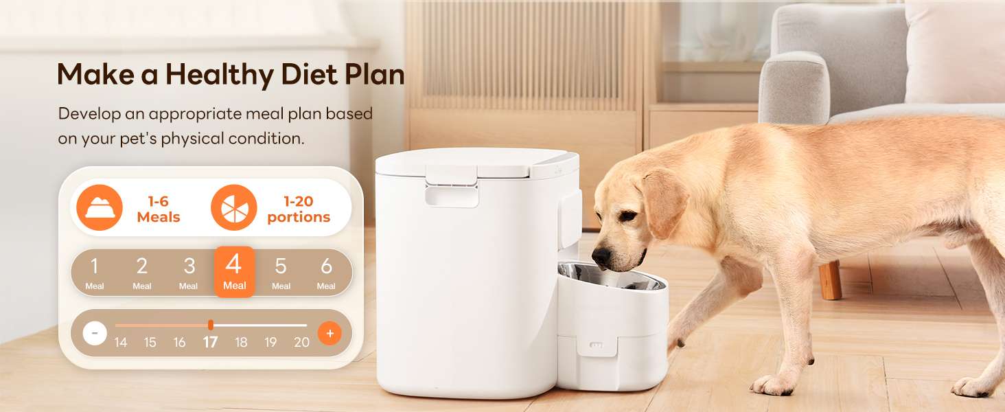 Programación sencilla sin necesidad de aplicaciones No requiere conexión a WiFi ni el uso de aplicaciones complicadas que suelen fallar. Todo se configura directamente desde la pantalla del equipo, donde puede programar hasta 6 comidas al día con porciones personalizadas. Además, permite grabar un mensaje de voz de 10 segundos para llamar a su mascota a comer.