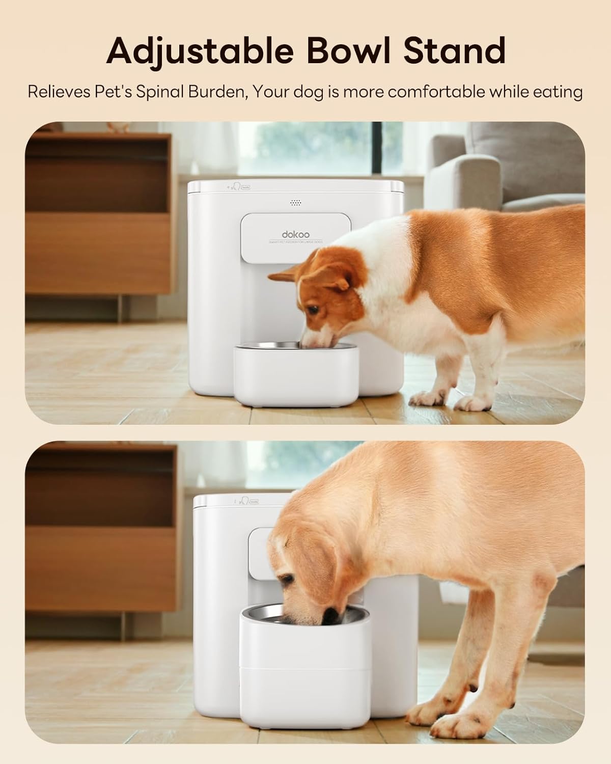 Soporte ajustable para cuidar la columna A diferencia de otros comederos, este modelo incluye una base con altura regulable. Esto permite que los perros medianos y grandes coman en una posición ergonómica, reduciendo la presión en el cuello y la espalda. Ayuda a prevenir problemas digestivos y protege la salud de la columna vertebral a largo plazo.