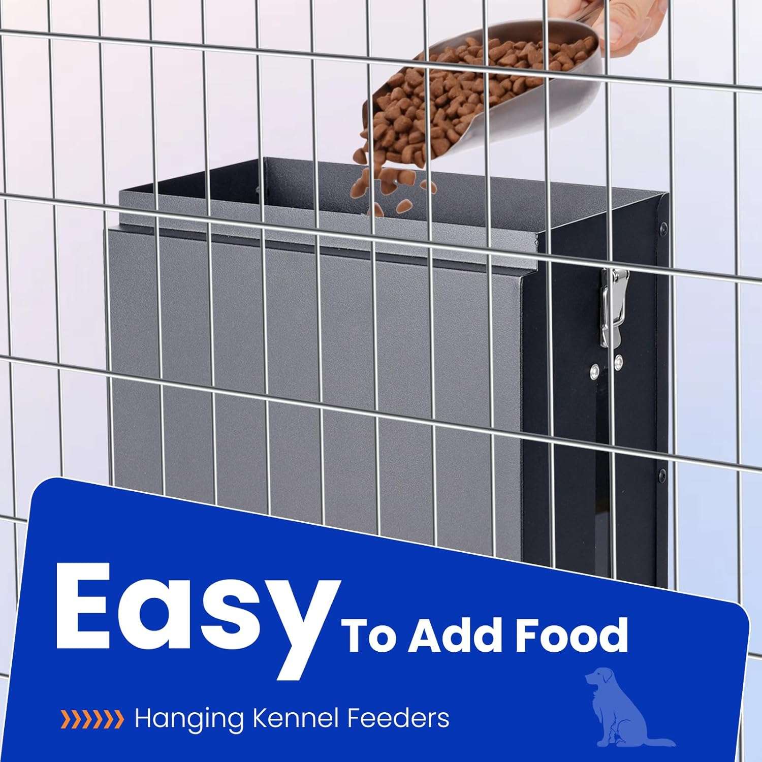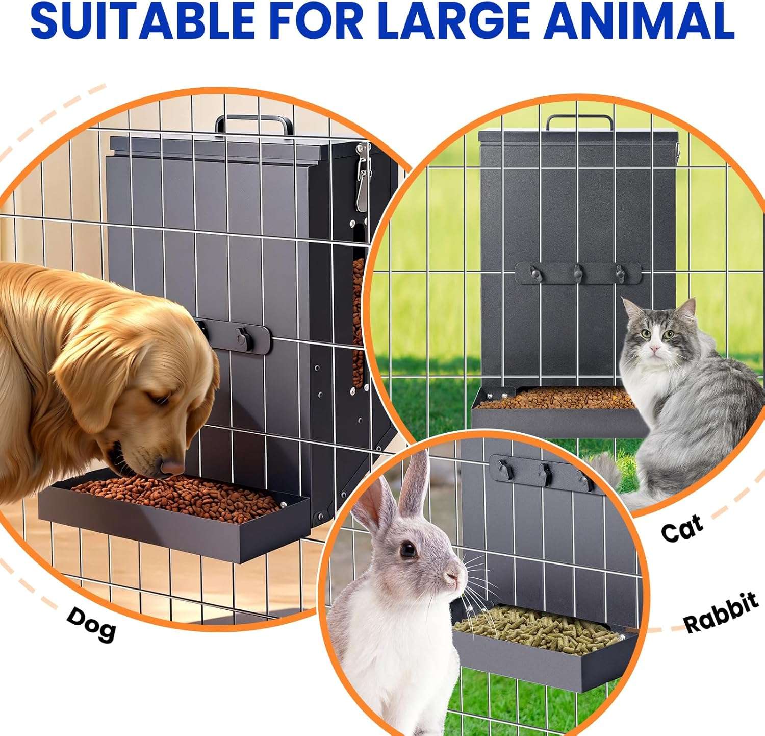 Este dispensador de alta capacidad es la solución definitiva para mantener el orden y el suministro constante de alimento en hogares que utilizan jaulas o caniles. Fabricado íntegramente en metal galvanizado de alta resistencia, este comedero de gravedad se ancla de forma inamovible a la estructura de la reja, eliminando los vuelcos y el desperdicio de comida.