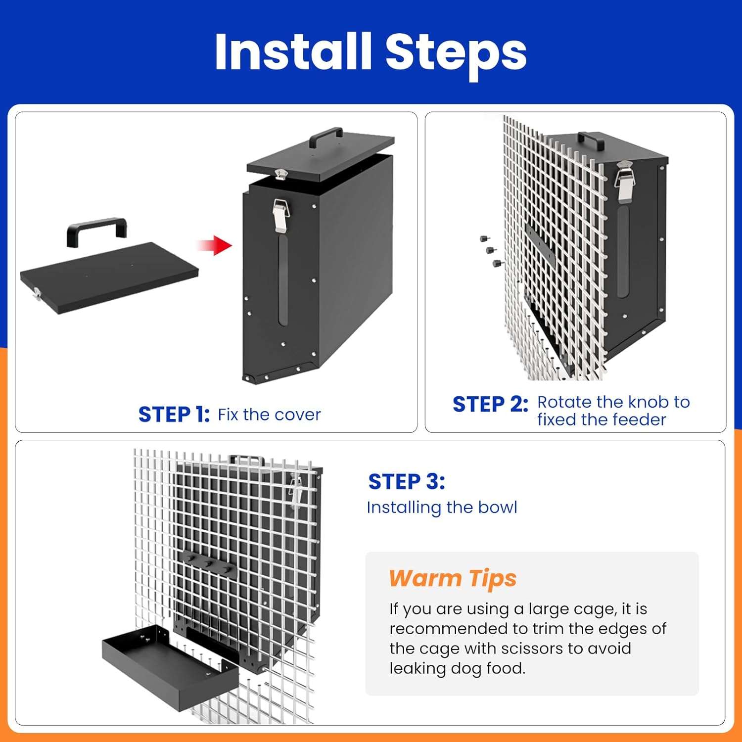 Sistema de Fijación Antivuelco de Alta Seguridad: Estabilidad total. El equipo incluye una placa de fijación metálica y tres tornillos reforzados que lo sujetan firmemente a la reja de la jaula. Este sistema soporta los impactos, empujones y tirones de perros grandes y enérgicos, garantizando que el comedero no se caiga y que la zona de descanso permanezca limpia y seca.