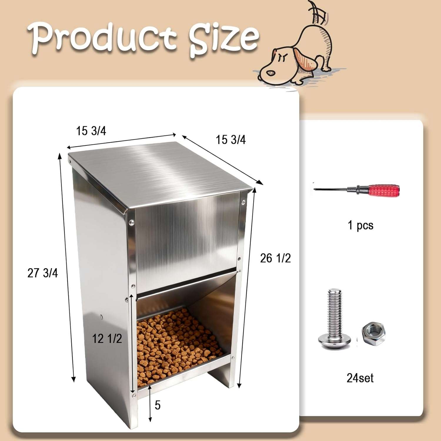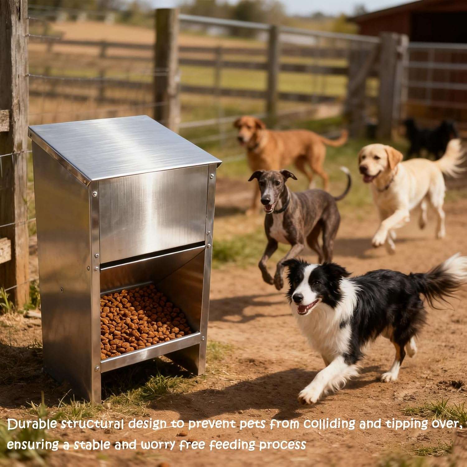 Acero inoxidable premium: La mejor inversión para su mascota A diferencia de los comederos de plástico o hierro que se oxidan, este dispensador está fabricado íntegramente en acero inoxidable de alta calidad. Es un material higiénico, libre de pinturas industriales y extremadamente resistente a los arañazos y mordidas. Su diseño con bordes redondeados garantiza que su perro coma de forma segura y sin riesgos de cortes.