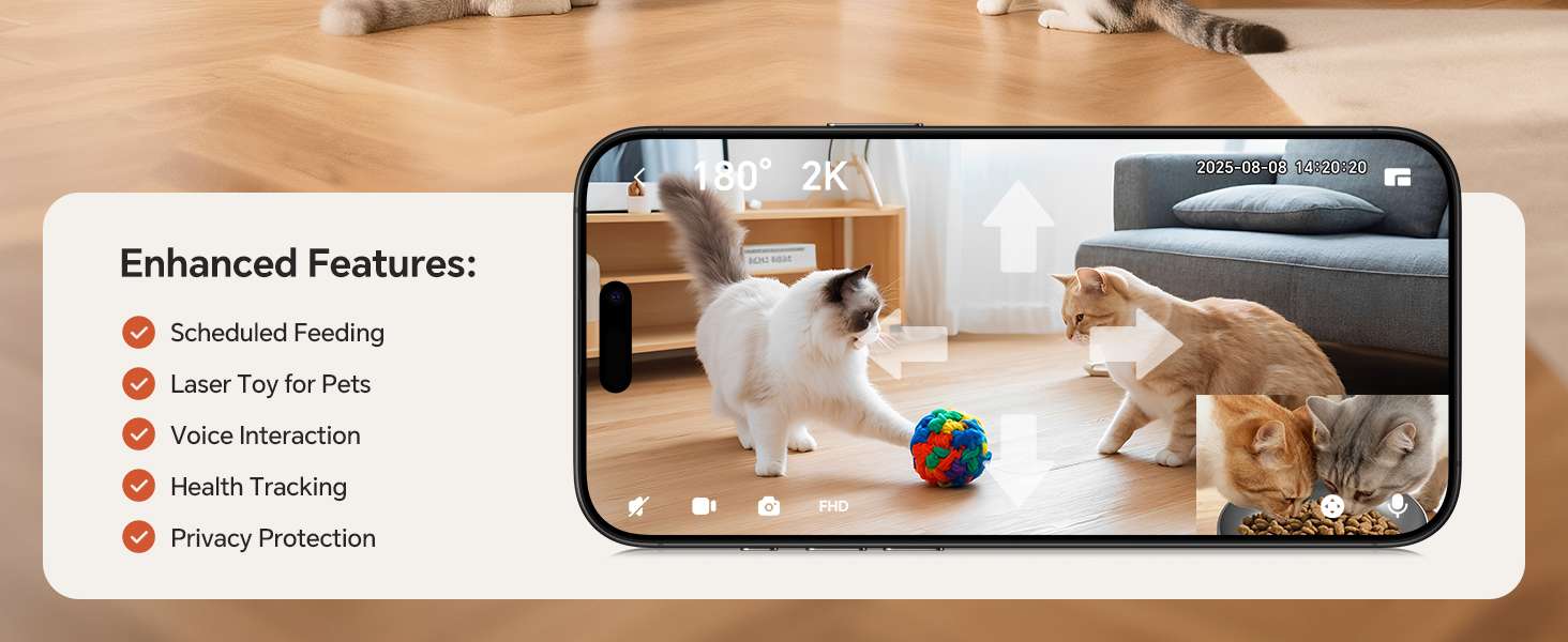 Alimentación precisa con tecnología WiFi 5G Olvídese de las desconexiones. Gracias a su compatibilidad con redes WiFi 5G, la aplicación responde al instante. Puede programar hasta 10 comidas diarias con porciones exactas, ideal para controlar el peso de su mascota. Su sistema de reparto giratorio anti-atascos acepta diversos tamaños de pellet, y el audio bidireccional le permite llamar a su amigo peludo a comer con su propia voz en tiempo real.