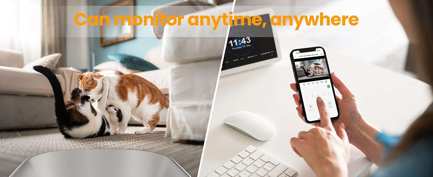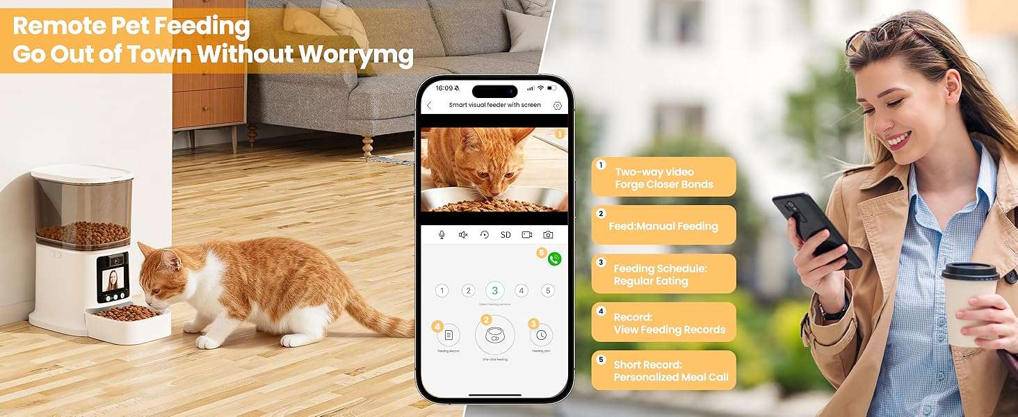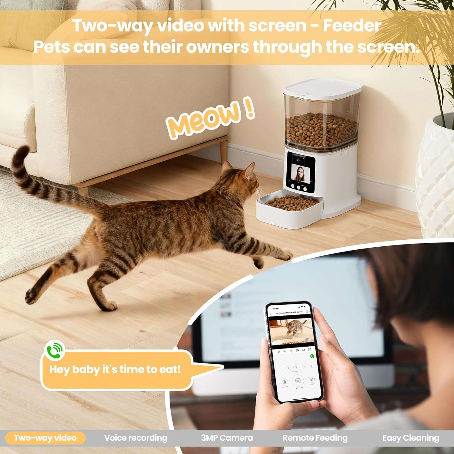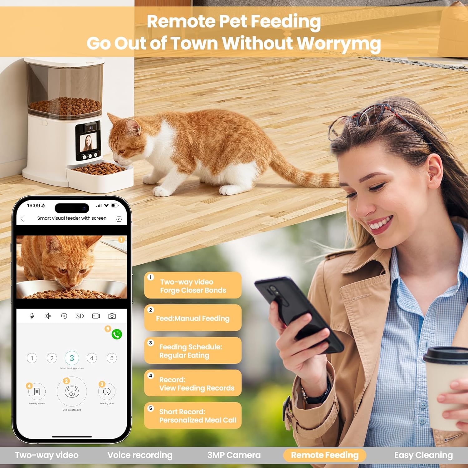 Interacción real: Vea a su mascota y deje que ella lo vea a usted Este no es un comedero con cámara común. Gracias a su pantalla integrada, usted puede realizar videollamadas en dos direcciones. Su mascota podrá ver su cara y escuchar su voz en tiempo real a través de la aplicación, lo que reduce drásticamente la ansiedad por separación. Es la tecnología ideal para quienes pasan muchas horas fuera de casa o trabajan en oficinas y quieren mantener el vínculo con su amigo peludo.