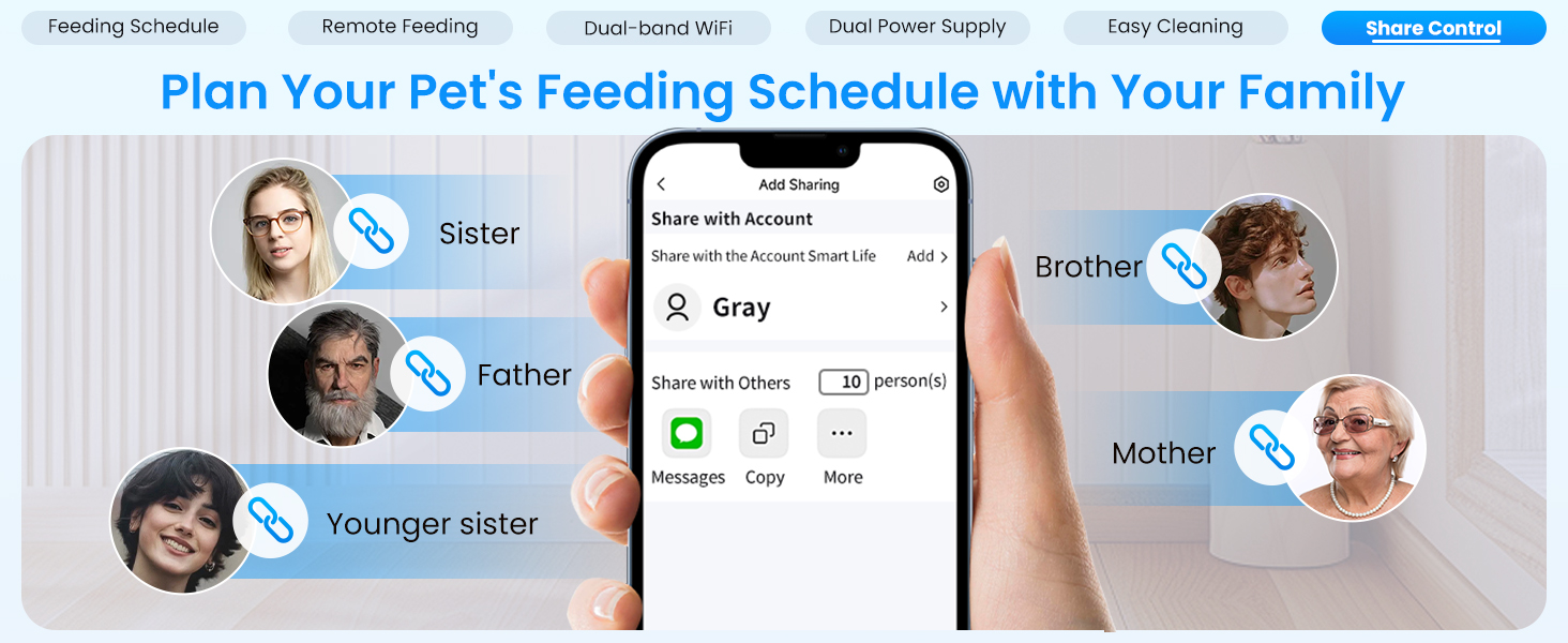Paz y nutrición precisa para tus dos mascotas Este comedero inteligente es la solución definitiva para hogares con dos gatos o perros pequeños en Chile. Gracias a su diseño con platos separados, cada mascota tiene su propio espacio vital para comer, eliminando el estrés y las peleas por el alimento. A través de la aplicación Smart Life, puedes gestionar la dieta de ambos desde cualquier lugar, asegurando que reciban sus raciones exactas incluso si estás en el trabajo o de viaje.