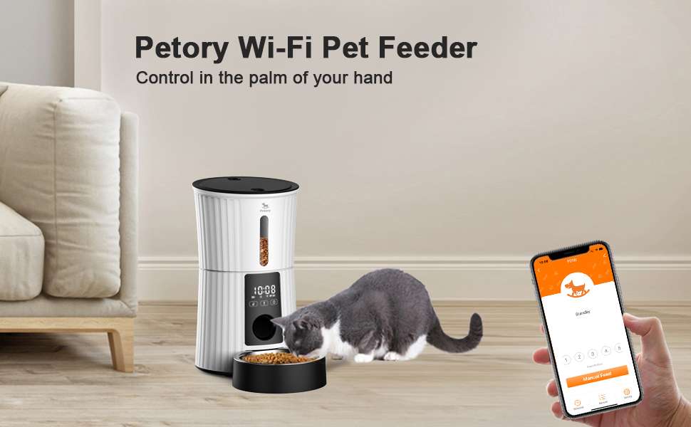 Programación fácil y flexible Gracias a su conexión WiFi con emparejamiento por Bluetooth, configurar el equipo es instantáneo. Puedes programar hasta 10 comidas al día y ajustar las porciones según lo que necesite tu mascota (cada porción es de aproximadamente 1/10 de taza). ¿Quieres premiarlo? Puedes entregarle un snack extra en cualquier momento desde la aplicación.