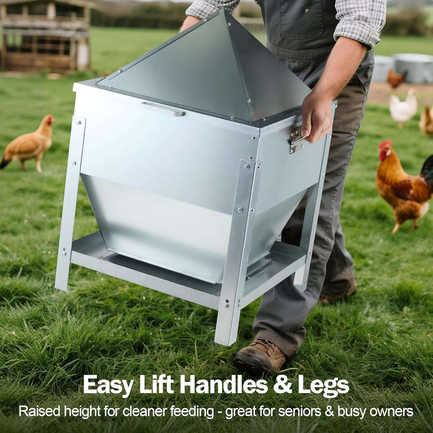 Autonomía Total: Tolva de 36 Kg con Patas Elevadas