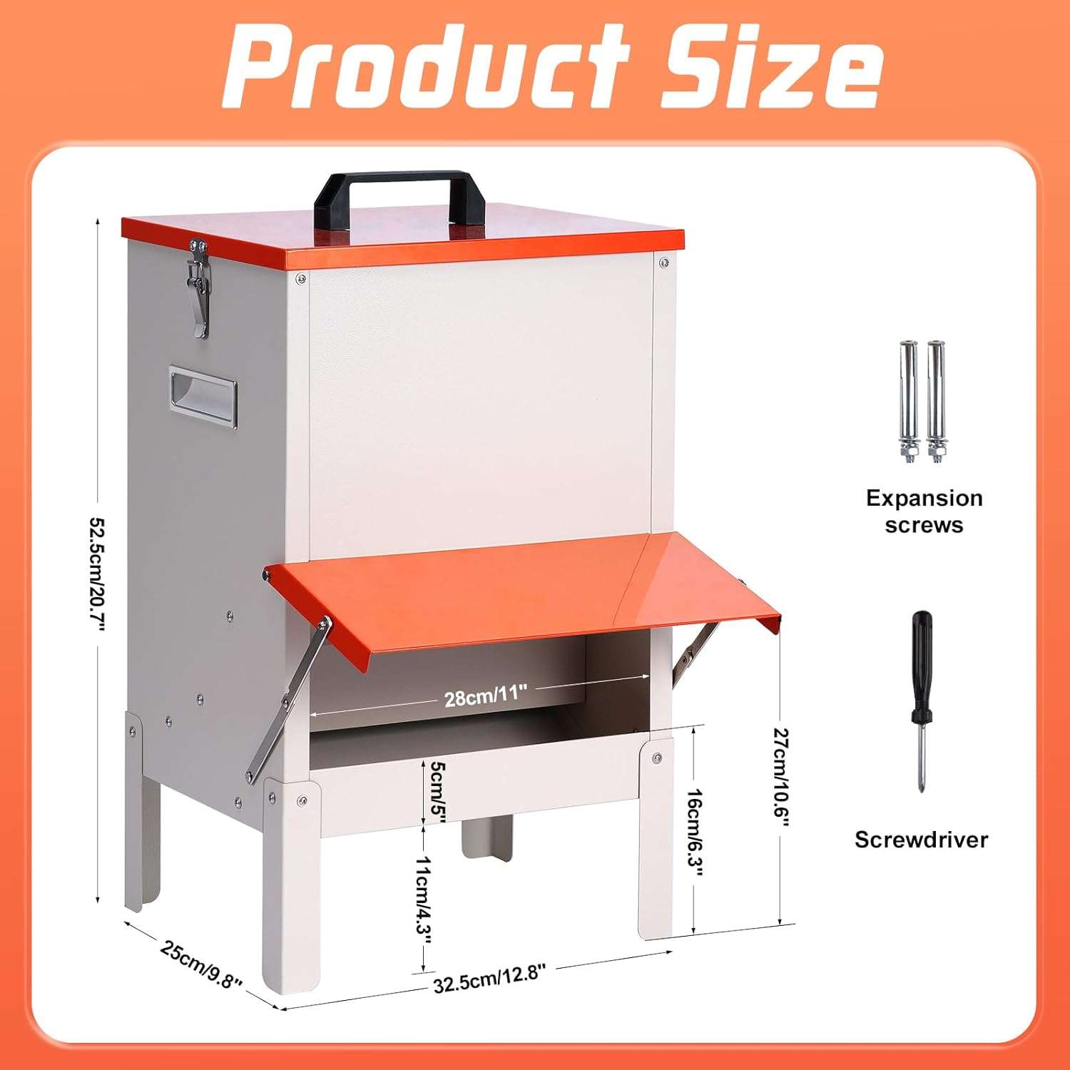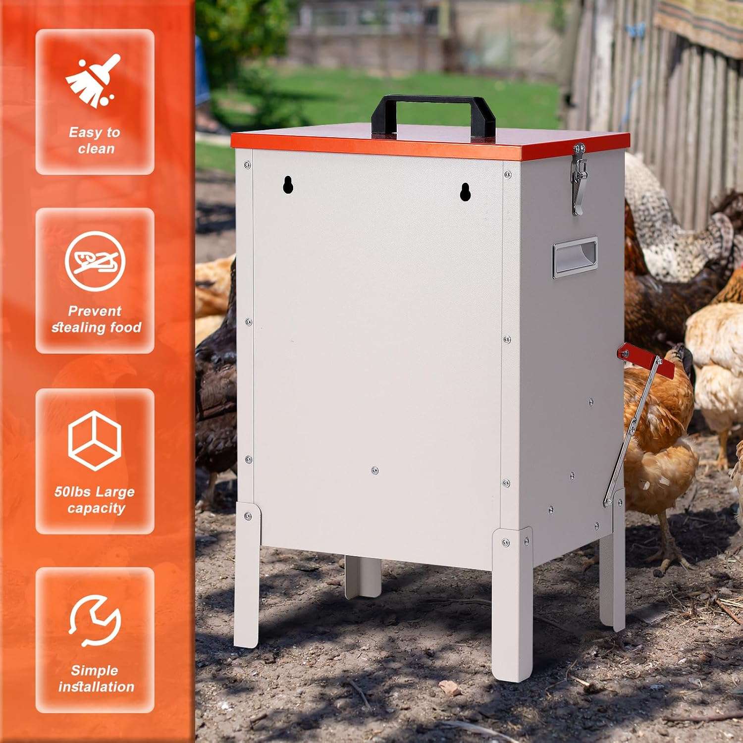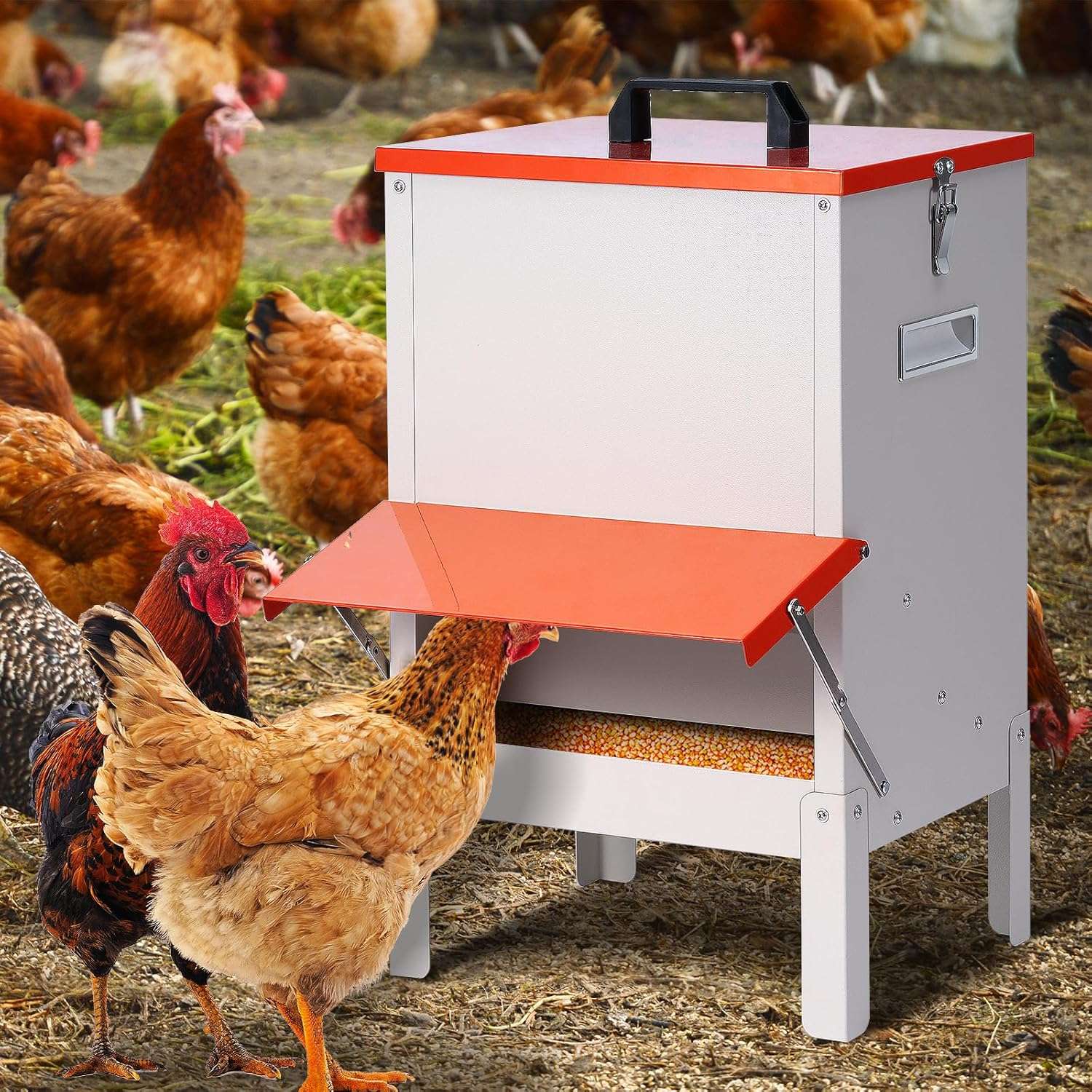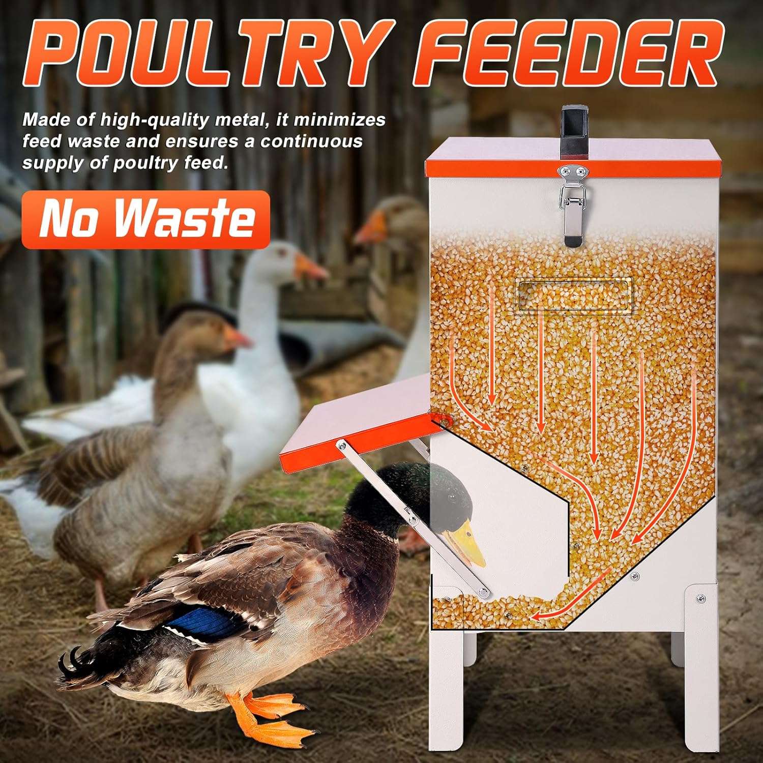 Este es el comedero definitivo para parcelas y patios. Fabricado en metal de alta calidad, resiste lo que los comederos de plástico no pueden: golpes, sol intenso y el intento de roedores por romper el depósito. Con una capacidad de 13.5 Kg (30 libras), ofrece una autonomía excepcional para bandadas medianas y grandes, permitiéndote descansar de la recarga diaria de alimento.