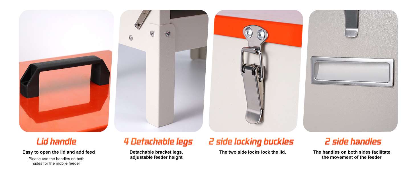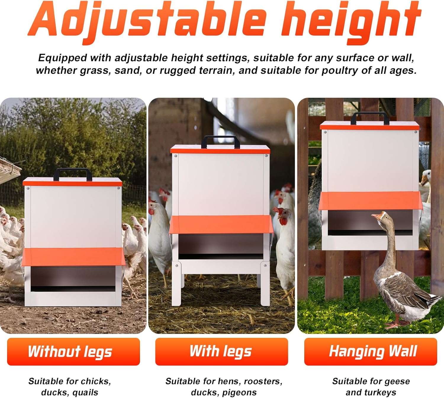 ¿Tu gallinero tiene terreno irregular, barro o pasto alto? No hay problema. A diferencia de los comederos de base fija, este modelo cuenta con patas de altura regulable. Puedes nivelarlo perfectamente en cualquier superficie y elevarlo según el tamaño de tus aves (pollos, gallinas, patos o gansos), manteniendo la base metálica lejos de la humedad del suelo y asegurando una estabilidad total.