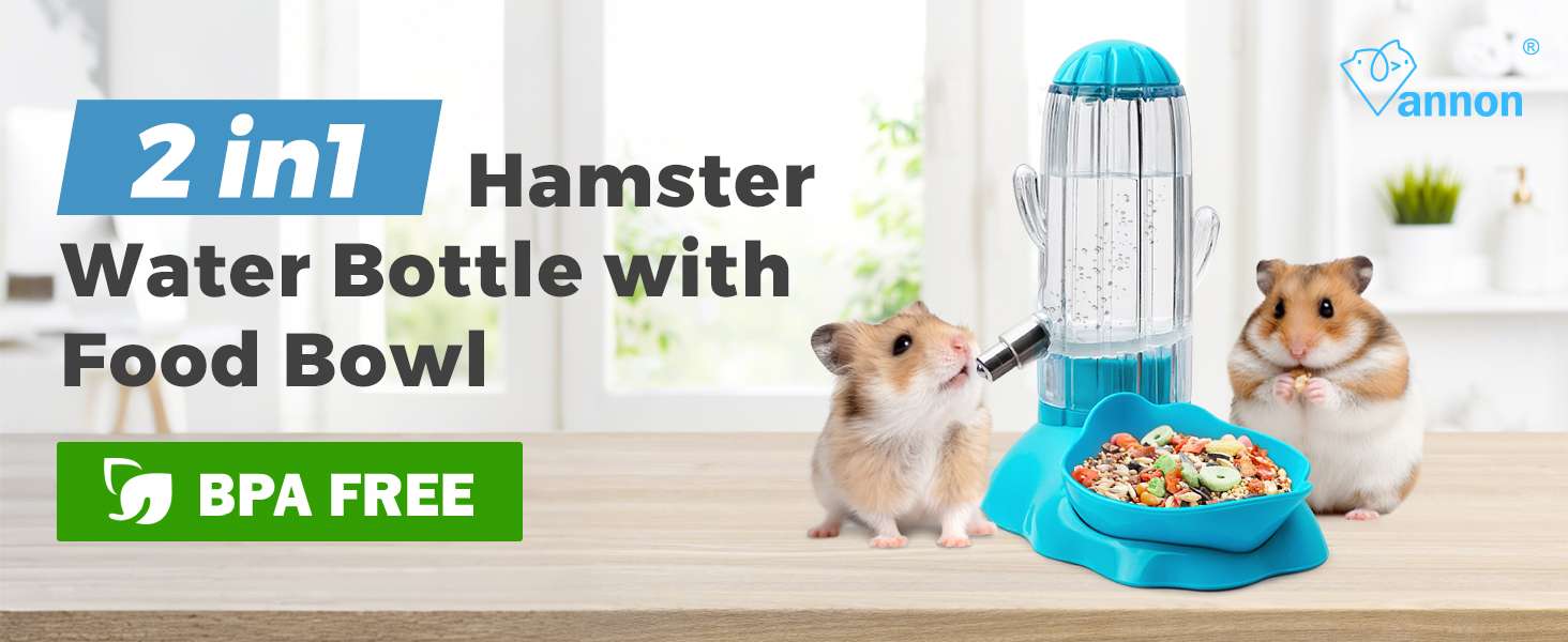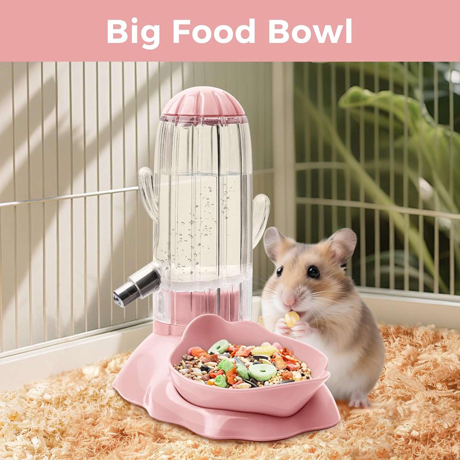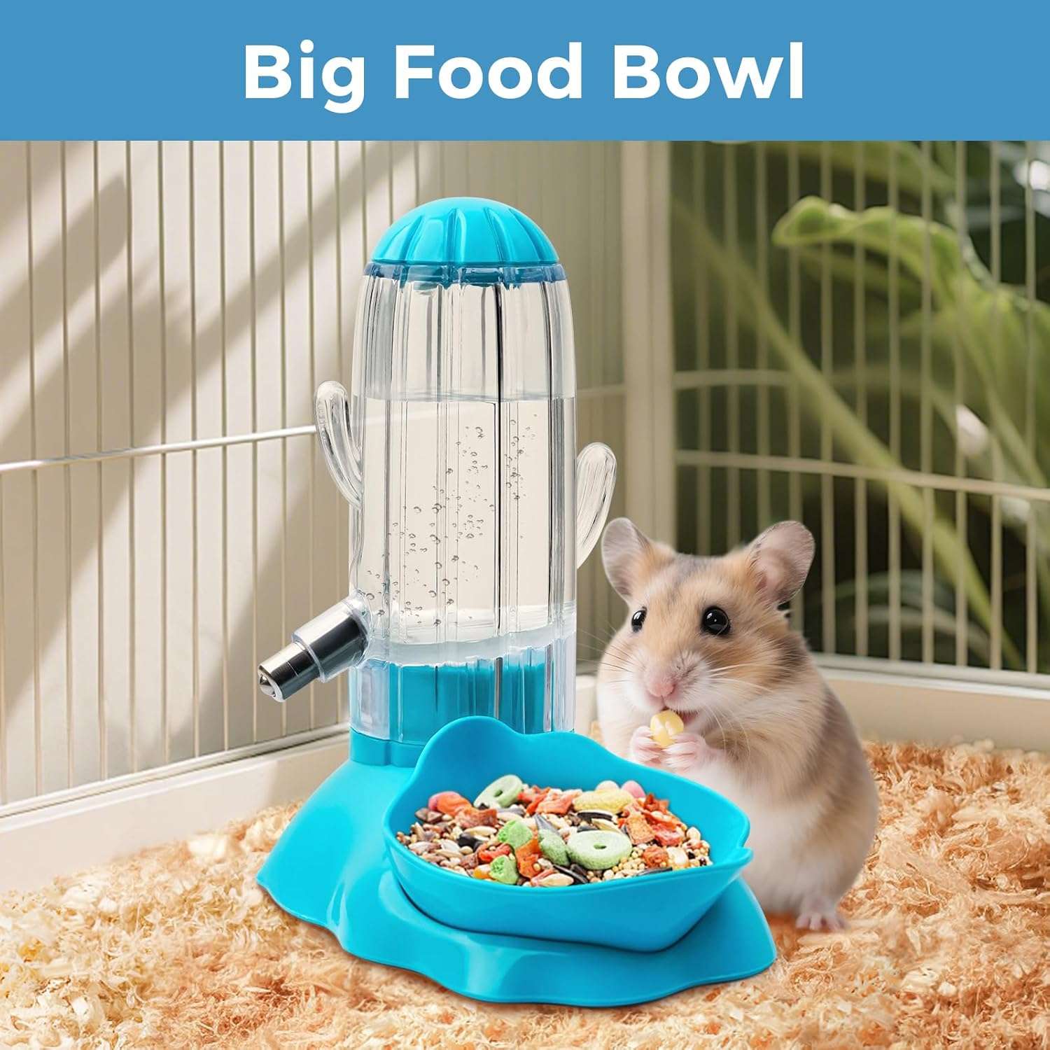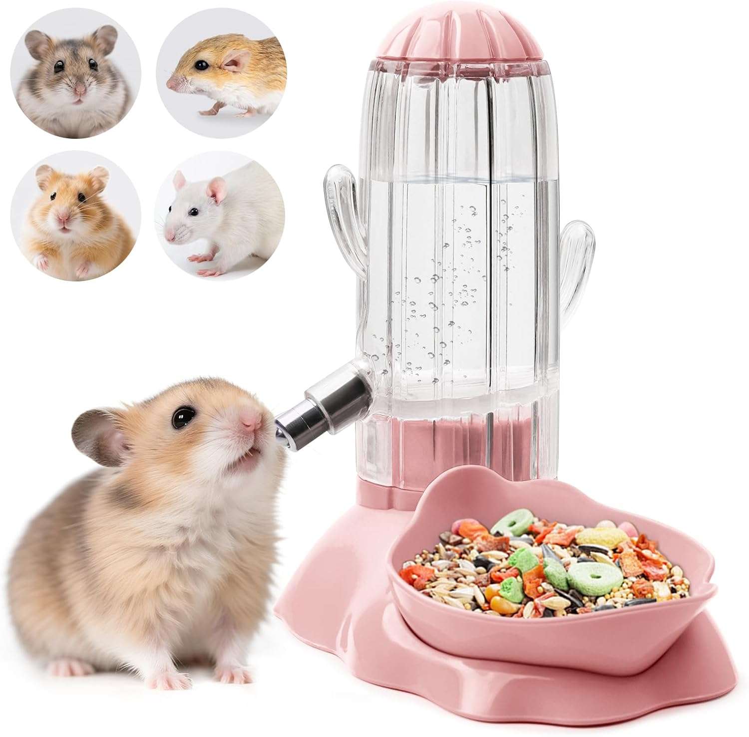 Diseño 2 en 1: este pequeño comedero para animales es adecuado para hámster, hámster enano, ratones pequeños, ratas, jerbos y otros animales pequeños, incluye botella automática y tazón de comida. La botella de agua multifunción ahorra mucho espacio.