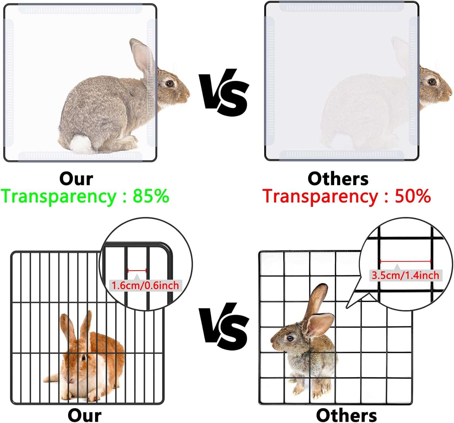 Combinación de hierro-plástico, visualización: Los paneles de plástico transparente y los paneles de malla de hierro mantienen suficiente visualización, puede ver e interactuar con sus conejos, cobayas, erizos, cachorros, hámsters, hurones, tortugas, etc. en cualquier momento; el panel de plástico del corral para mascotas es fácil de limpiar y hermoso; el panel de malla de hierro se encuentra en la capa inferior, que está ventilada y evita que las mascotas masticen.