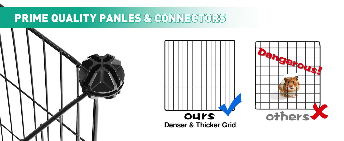 Paneles de plástico impermeables: nuestra valla de animales pequeños incluye 10 paneles de valla de plástico negro, que se pueden montar en la parte inferior del corral de conejo como tapete impermeable para proteger tu suelo de manera efectiva, y se puede montar en la capa media del corral de juego para cachorros para crear el espacio de doble capa. Es fácil de limpiar y solo necesita limpiarse con una toalla. Sugerencia: Si sus mascotas disfrutan de masticar, puede armar los paneles de plástico en la parte superior o en algún lugar donde las mascotas no puedan tocar.