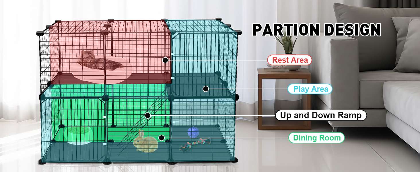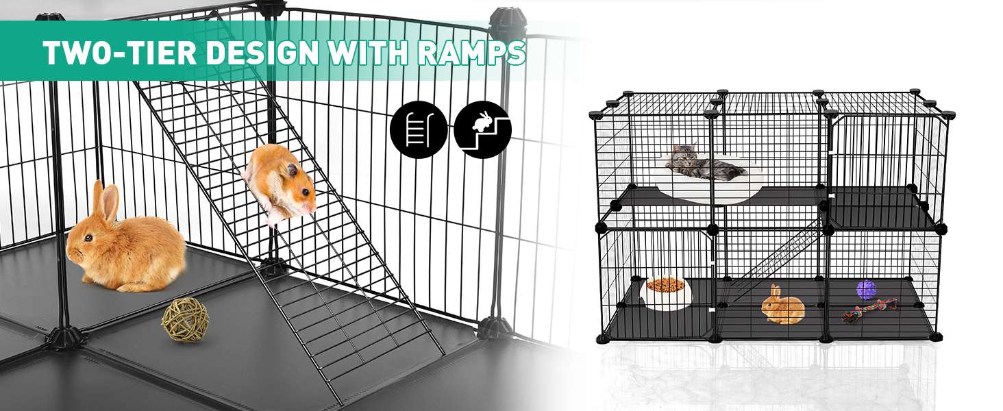 Diseño personalizable: el corralito de conejillo de indias incluye una rampa, lo que aumenta el espacio de actividad y la diversión para tus mascotas. Este corral para mascotas de 2 pisos cuenta con un diseño de bricolaje que te permite crear una partición personalizada para descansar y jugar, de acuerdo con sus hábitos y preferencias. También se puede ampliar más grande con dos juegos y más.