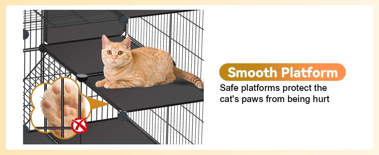 Plataforma y rampa seguras: las plataformas conectadas por rampas permiten que tus pequeñas mascotas escalen y exploren de forma segura. La plataforma lisa puede evitar que las patas del gato se lastimen. Este corralito para gatos de interior de 3 niveles proporciona a los gatos o gatitos un ambiente seguro y estimulante para jugar y descansar.