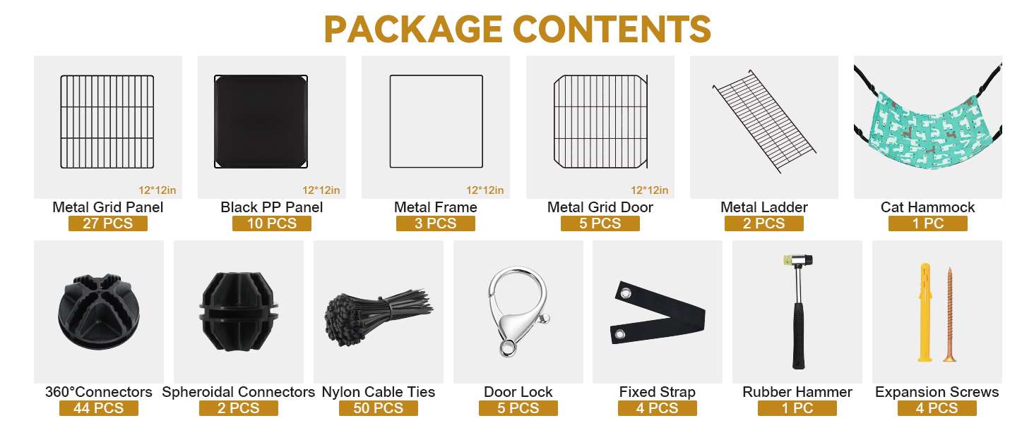 Resistente y duradero: con un diseño único antivuelco, asegura el recinto interior para gatos a la pared con tornillos de expansión y correas fijas. Hechas de alambre de acero duradero resistente al óxido, las jaulas para gatos vienen con cerraduras de puerta y conectores mejorados, mientras que las bridas incluidas aumentan la estabilidad y durabilidad de la jaula para gatitos.