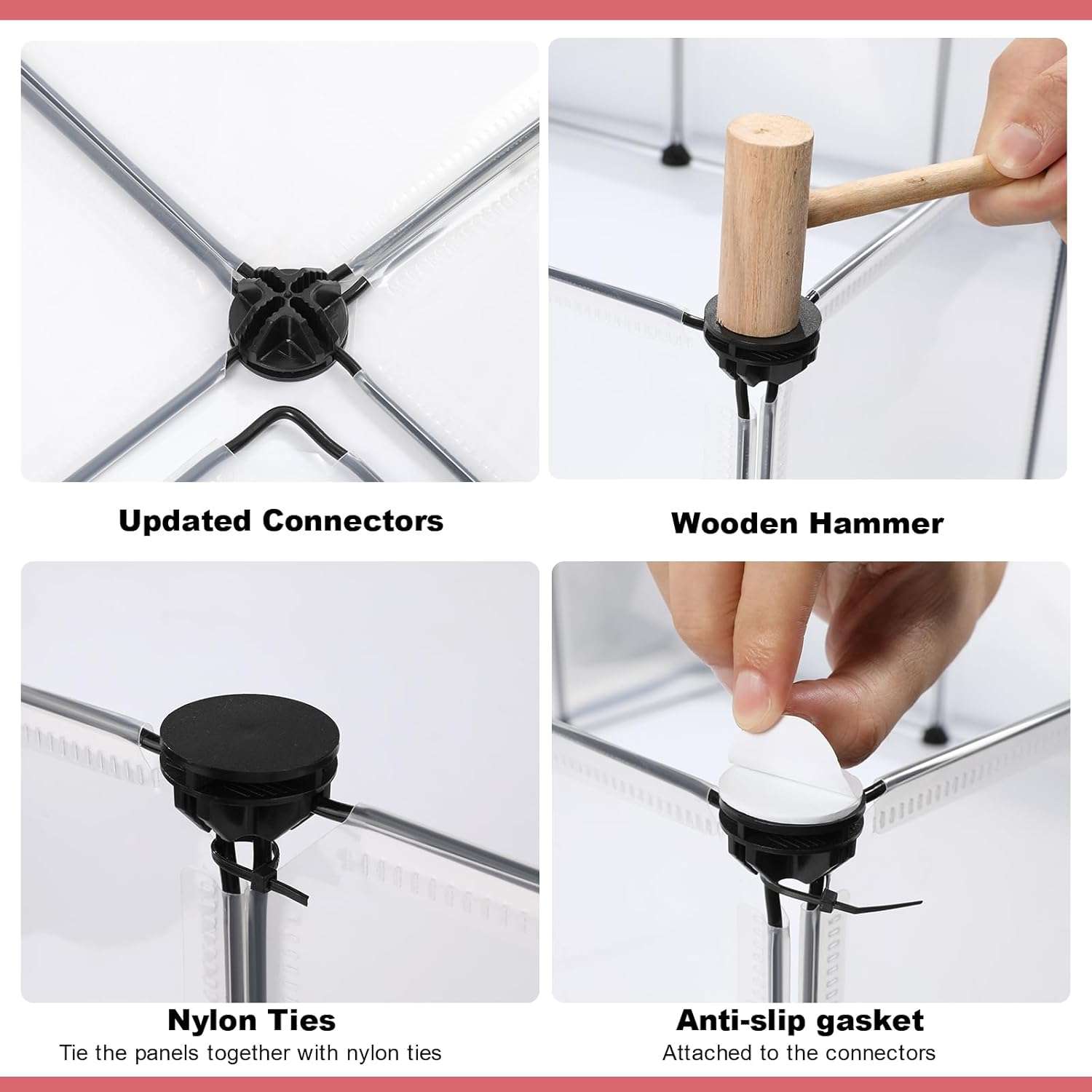La mejor opción para animales pequeños: el panel de plástico no tiene bordes afilados y no daña a los animales pequeños. El corral transparente VISCOO para animales pequeños se puede utilizar como una jaula de conejillo de indias, corral de conejo o conejitos, jaula de conejo o conejito, cerca de interior o exterior para conejo o conejito, o valla de patio. Es una opción absolutamente versátil y práctica para los dueños de mascotas.