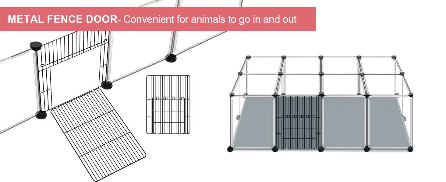 Diseño de puerta de cerca de metal: hay un corral de animales pequeños con una puerta de valla de metal para una fácil gestión de la entrada y salida de tu mascota. La incorporación de un diseño único de panel transparente hace que sea conveniente observar a tu mascota desde todos los ángulos, asegurando que tu mascota está jugando dentro de un área delimitada sin desordenar el resto del espacio. Además, el panel es muy fácil limpiar, simplemente limpia su superficie con un paño húmedo.