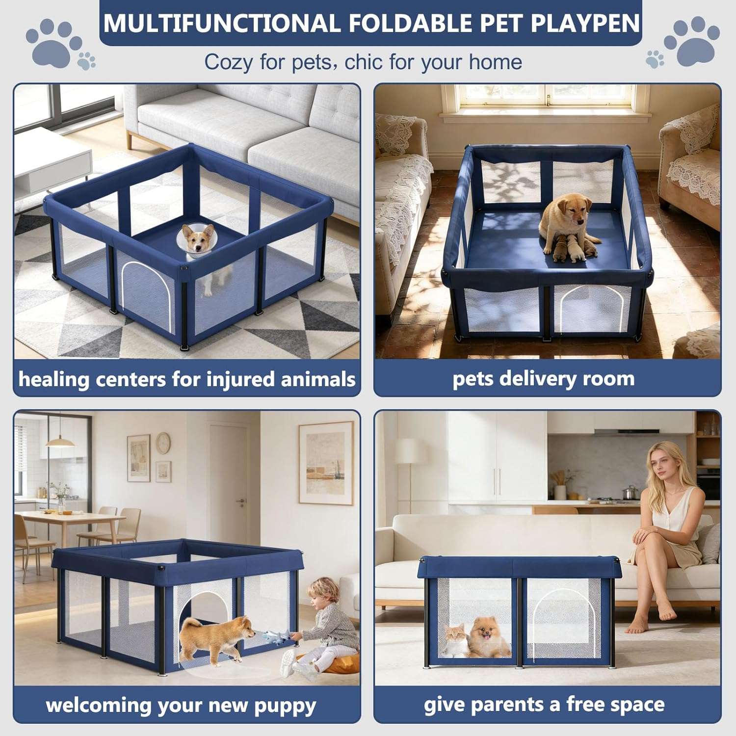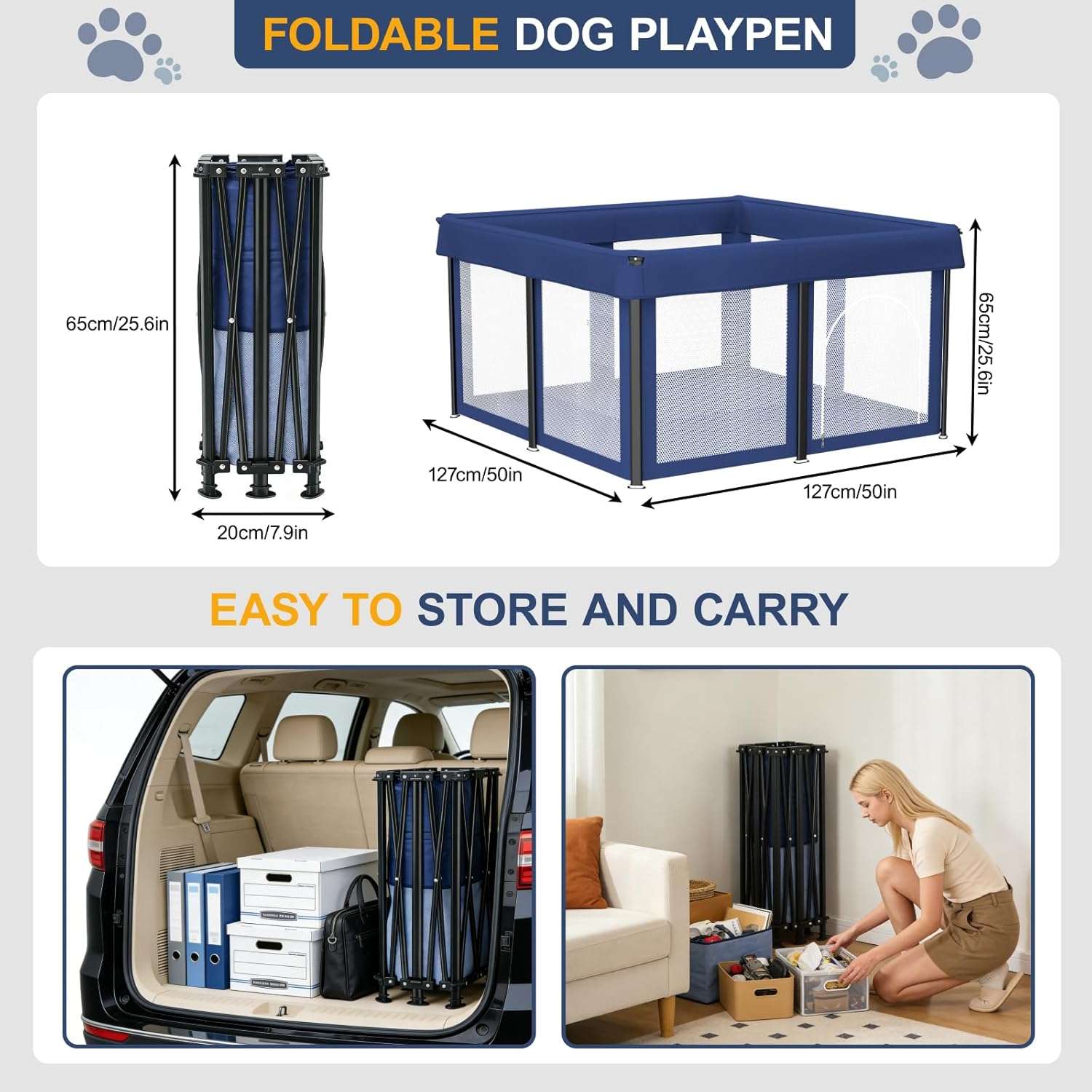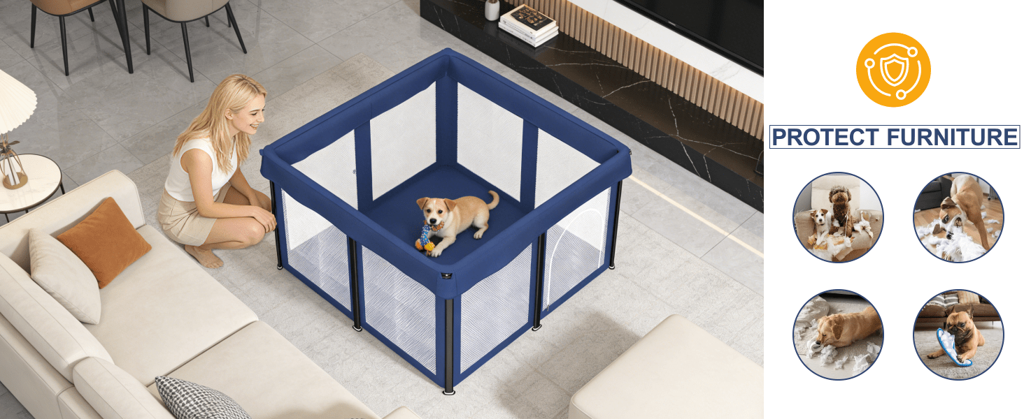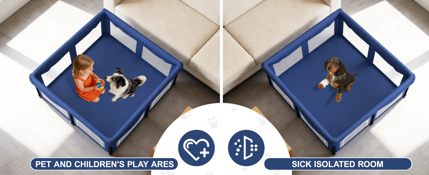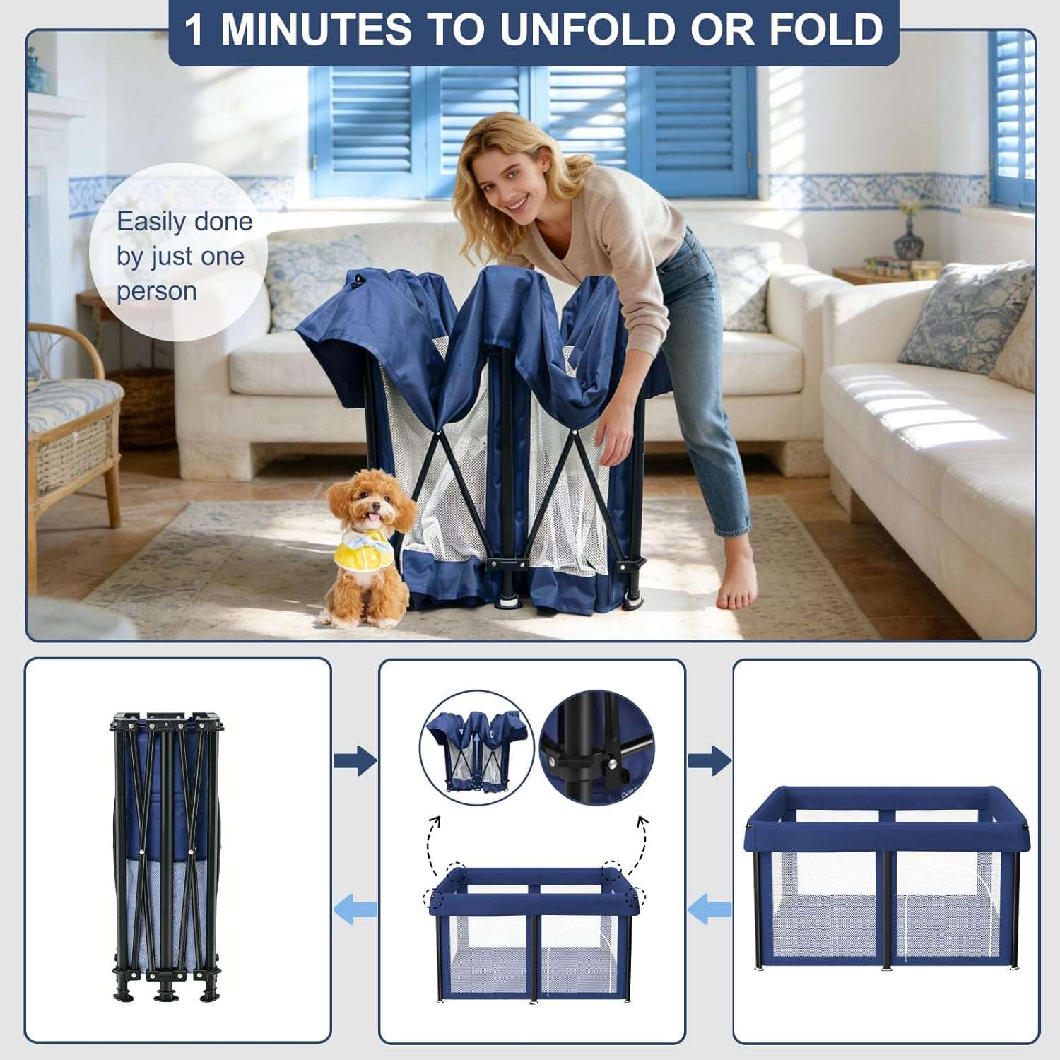 Su mayor ventaja es su innovadora estructura plegable que no requiere herramientas ni piezas de ensamblaje complejas Solo necesita tirar para desplegar el producto ahorrando tiempo y esfuerzo Cuando se encuentra plegado su tamaño compacto facilita enormemente el almacenamiento y el transporte eliminando por completo el volumen de los corrales de metal tradicionales siendo ideal para llevar de viaje o usar en el patio