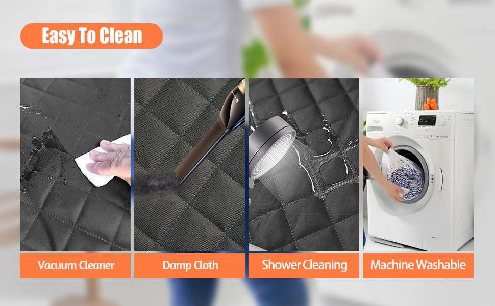 Instalacion Rapida y Limpieza Sencilla Preparate para salir en cuestion de segundos. Instalar o retirar esta funda del asiento trasero es sumamente rapido y no requiere herramientas. Cuando regreses de tu paseo, basta con pasar un pano humedo o usar la aspiradora sobre la superficie para dejarla como nueva y lista para la proxima aventura.