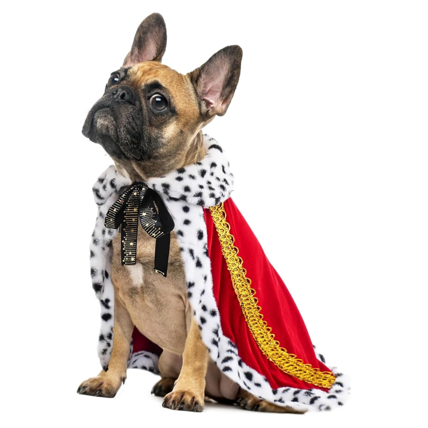 Entra en un mundo de encanto real con nuestra capa de rey rojo real, el accesorio definitivo de atuendo navideño para disfraces de perro rey y reina esta Navidad.