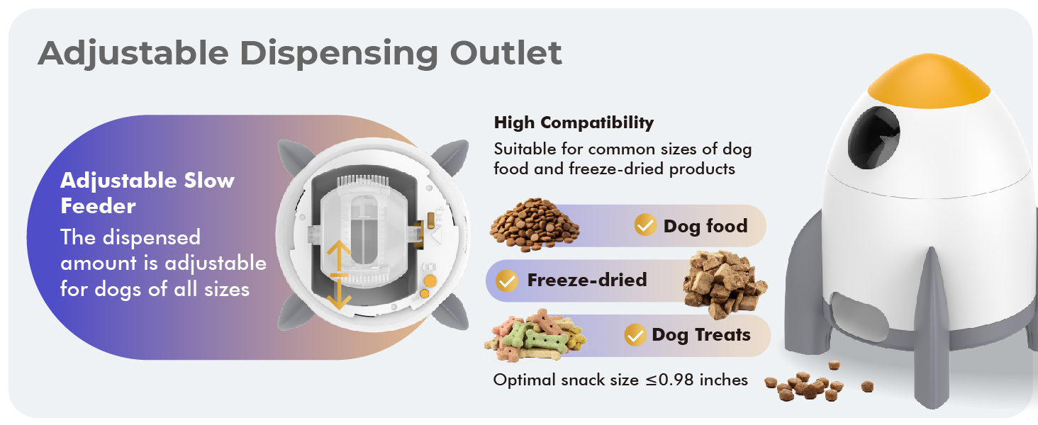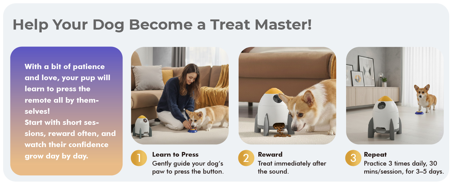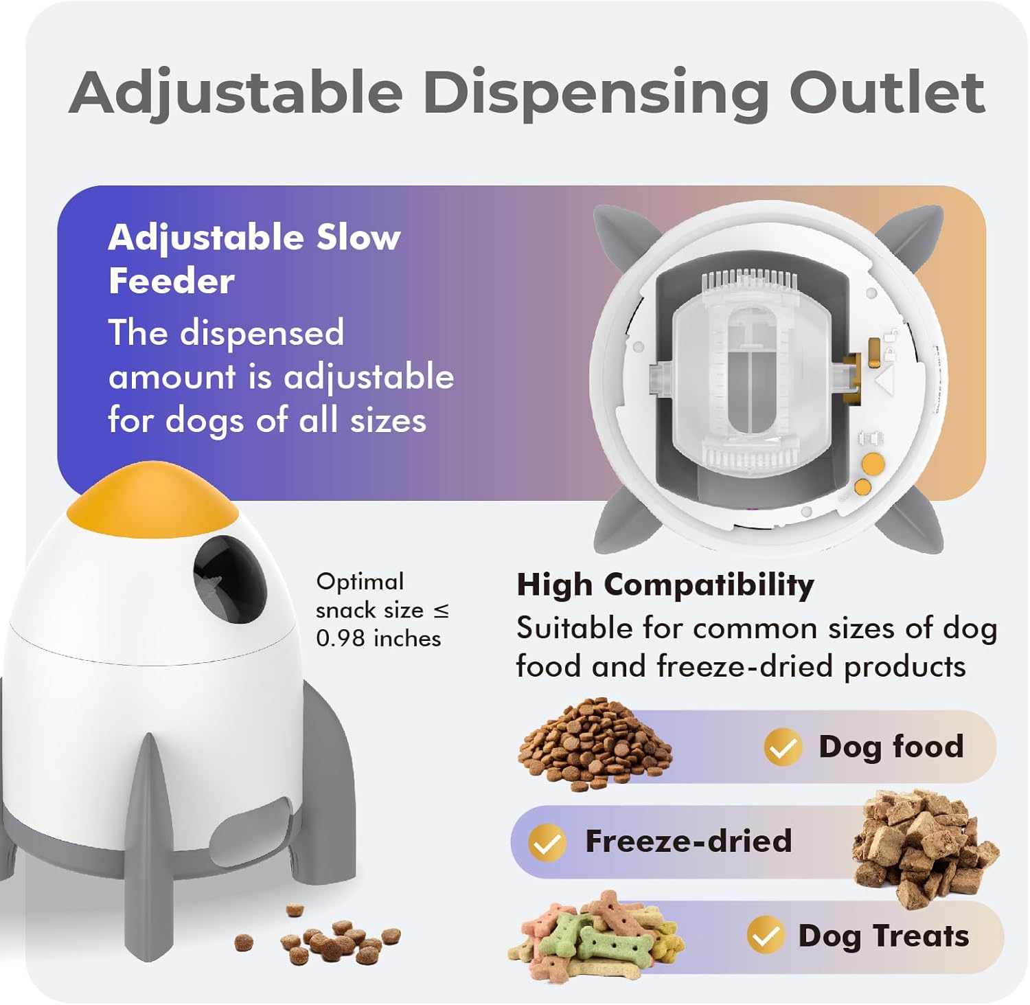 Juego interactivo de largo alcance Diseñado para la vida moderna, este juguete permite una interacción remota de hasta 24 metros. Puedes colocar el botón en una habitación y el dispensador en otra para fomentar el ejercicio físico y la coordinación. Su diseño es robusto y apto para perros de todos los tamaños. Además, la función de grabación le permite a tu perro escuchar tu voz antes de recibir su premio, fortaleciendo el vínculo afectivo incluso cuando estás ocupado.