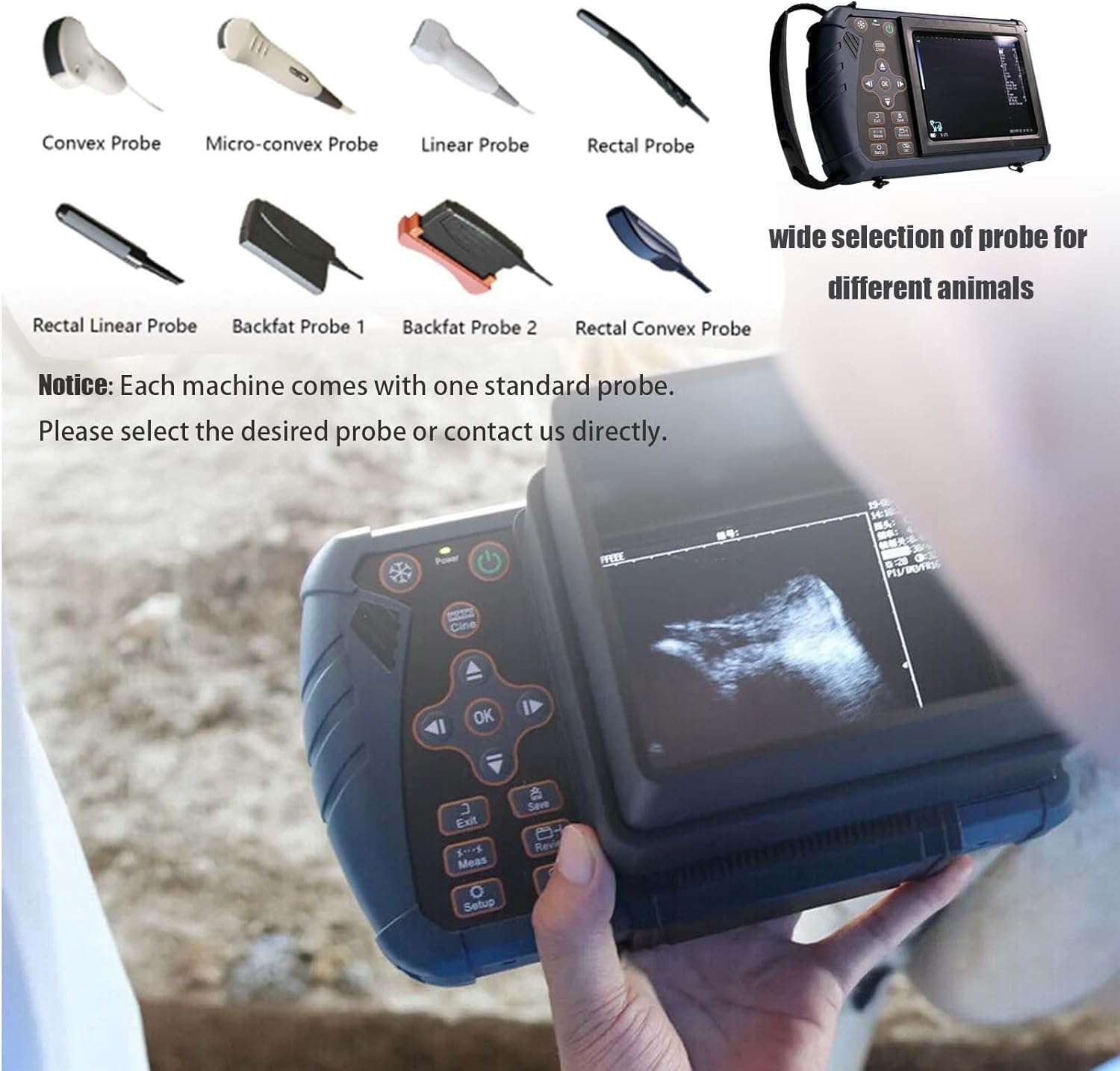 Sonda de Alta Frecuencia: Incluye una sonda microconvexa de 5.0 MHz (con rango de hasta 7.5 MHz), ideal para el diagnóstico de gestación (embarazo) y el examen detallado de órganos en mascotas pequeñas.