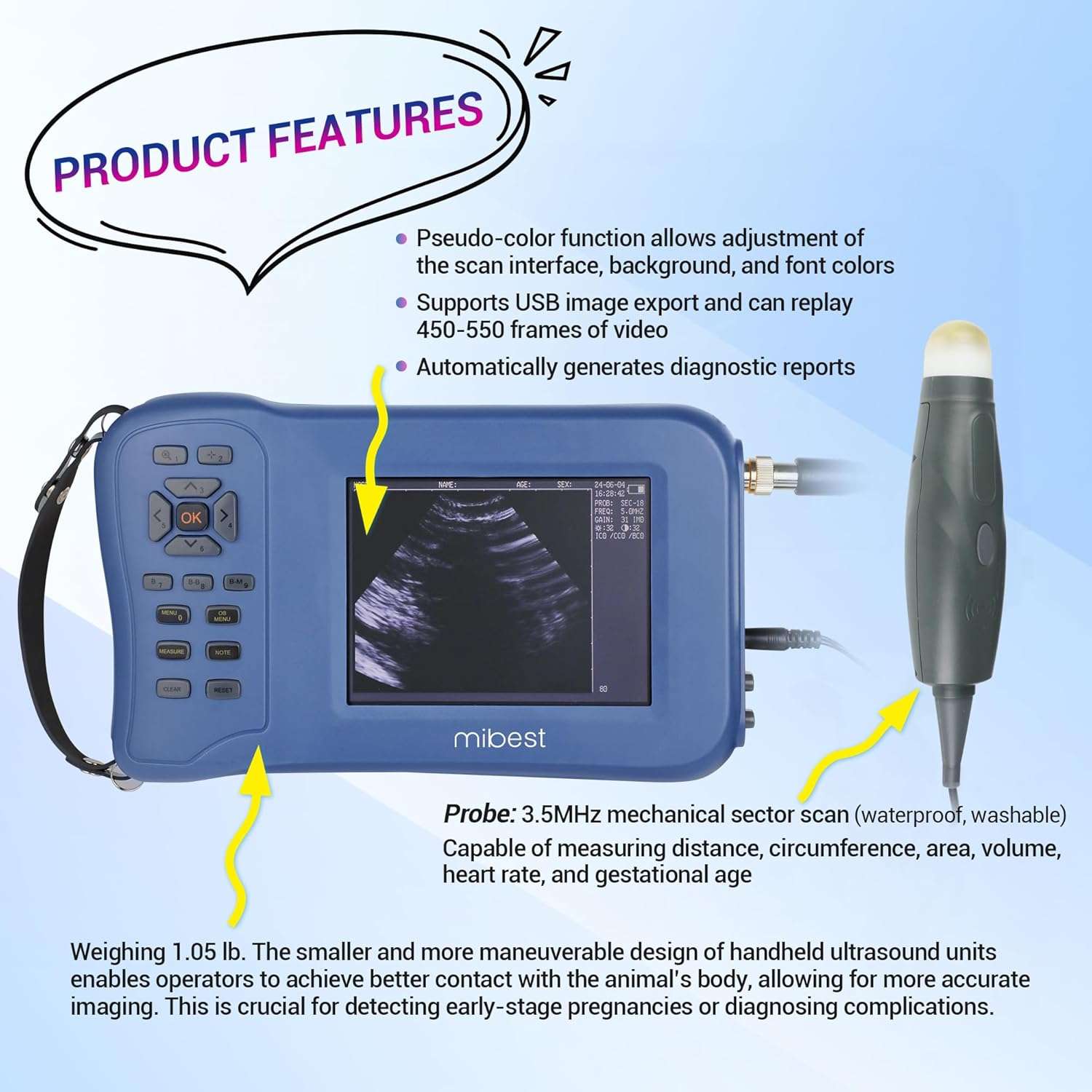 Especializado en Gestación: Diseñado para controles de embarazo precisos y eficientes en una amplia gama de animales, incluyendo vacas, caballos, ovejas y perros.
