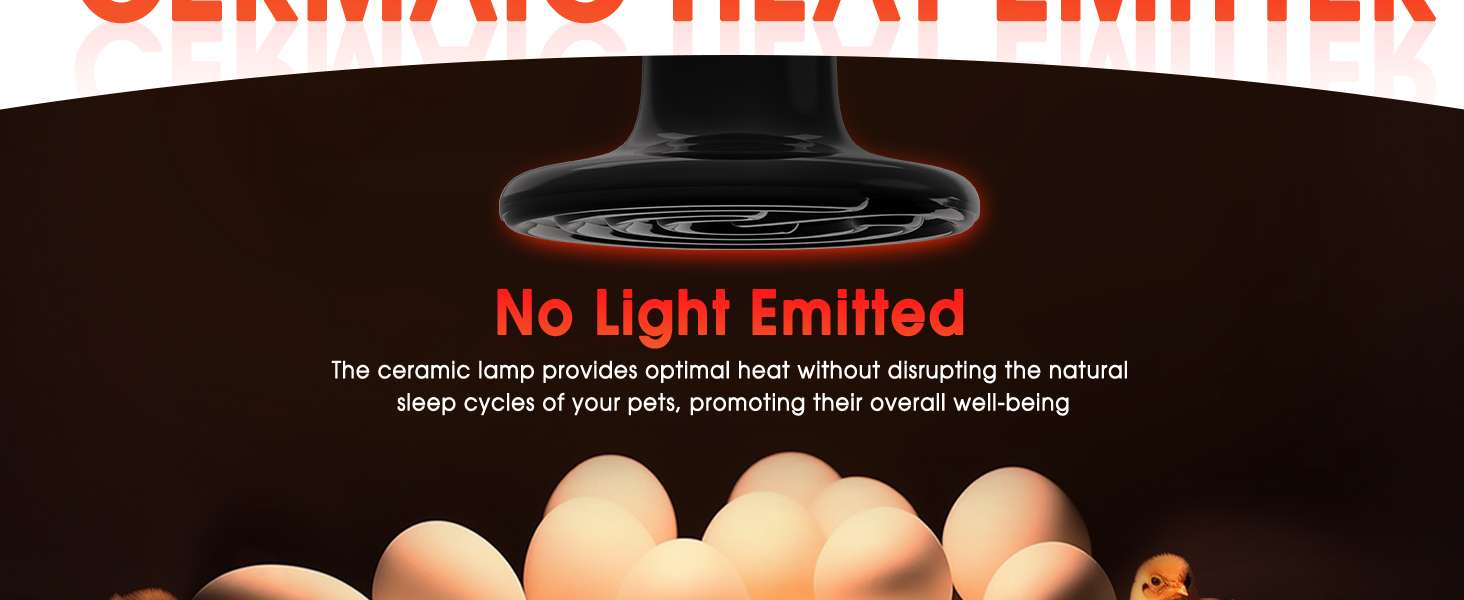Sin luz emitida: el emisor de calor de cerámica negra, que no emite luz, es beneficioso para reptiles nocturnos y animales sensibles a la luz, ya que proporciona el calor necesario sin perturbar sus comportamientos naturales o ritmos biológicos. Esta bombilla de calor sirve como una fuente de calor ideal mientras mantiene un ambiente tenue u oscuro