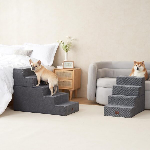 Múltiples usos: la escalera de espuma EHEYCIGA para perro está diseñada para adaptarse al borde de una cama, sofá u otros muebles, lo que permite que tu mascota suba y baje cómodamente. Es un escalón portátil para perros adecuado para perros pequeños y medianos.