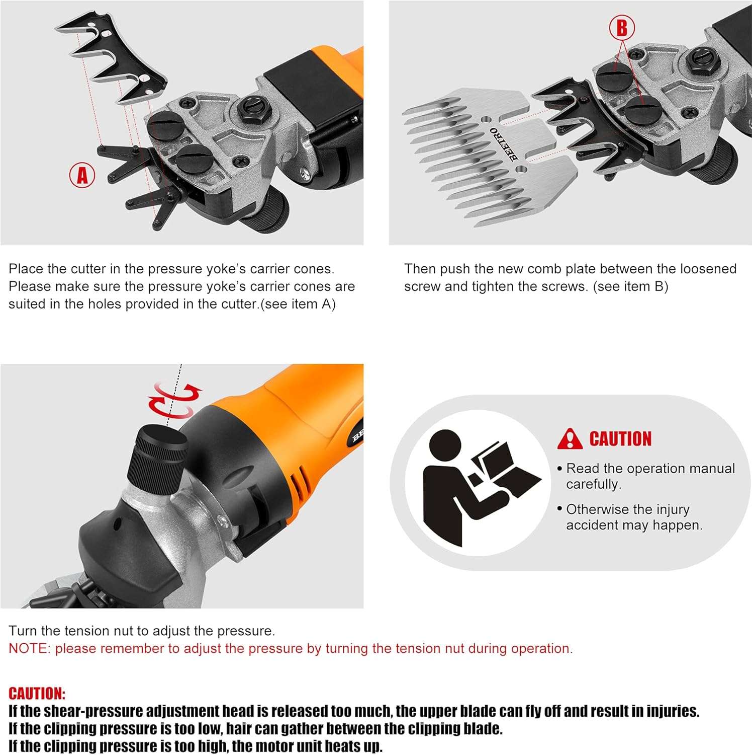 Uso Profesional y Precauciones: Diseñada especificamente para la familia de las ovejas y camellos (alpacas, llamas). No debe usarse en personas ni perros debido a su potencia. Para el mantenimiento, recuerde lubricar las cuchillas, usar spray de enfriamiento cada pocos minutos y realizar pausas cortas para evitar el sobrecalentamiento.