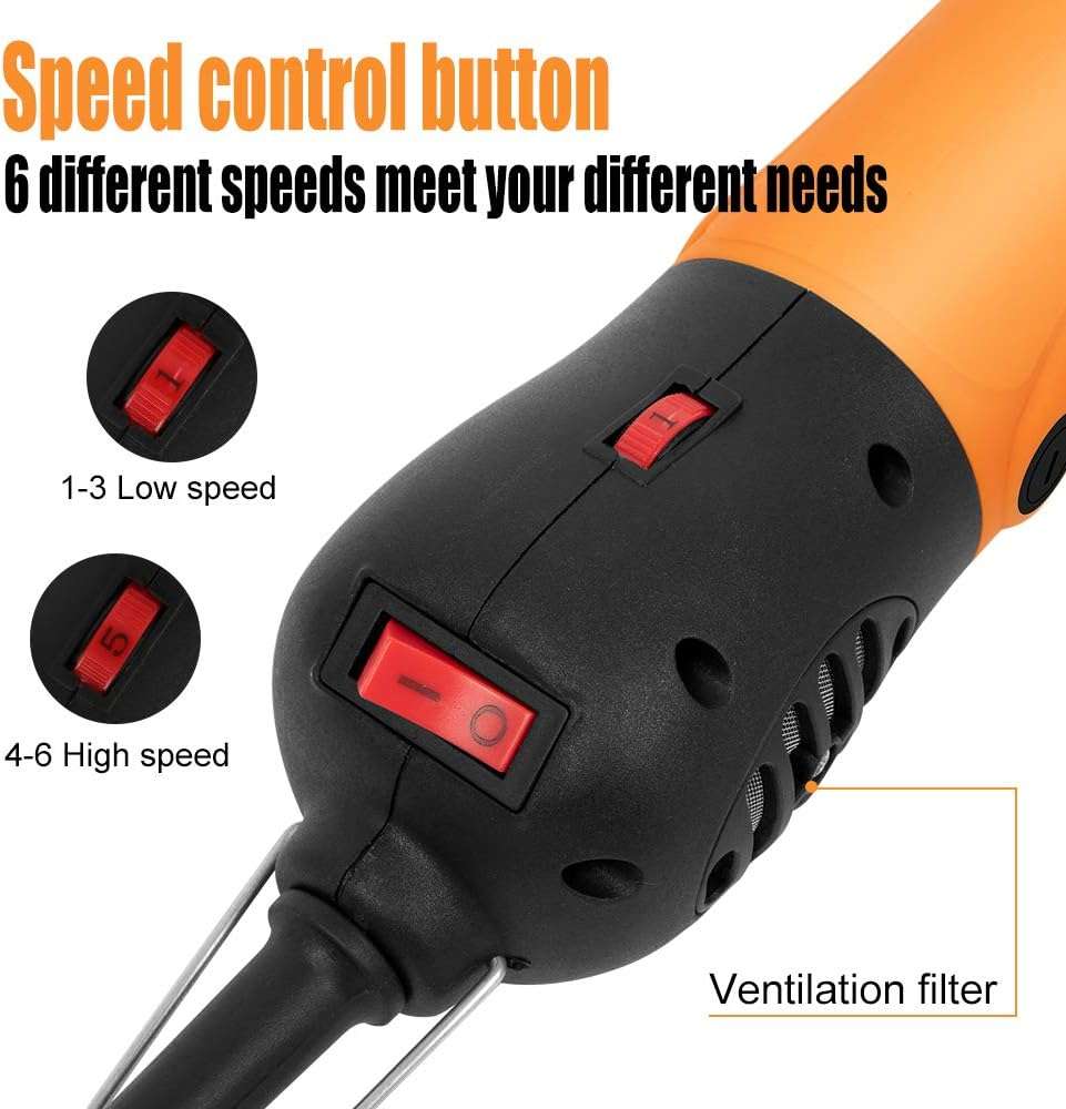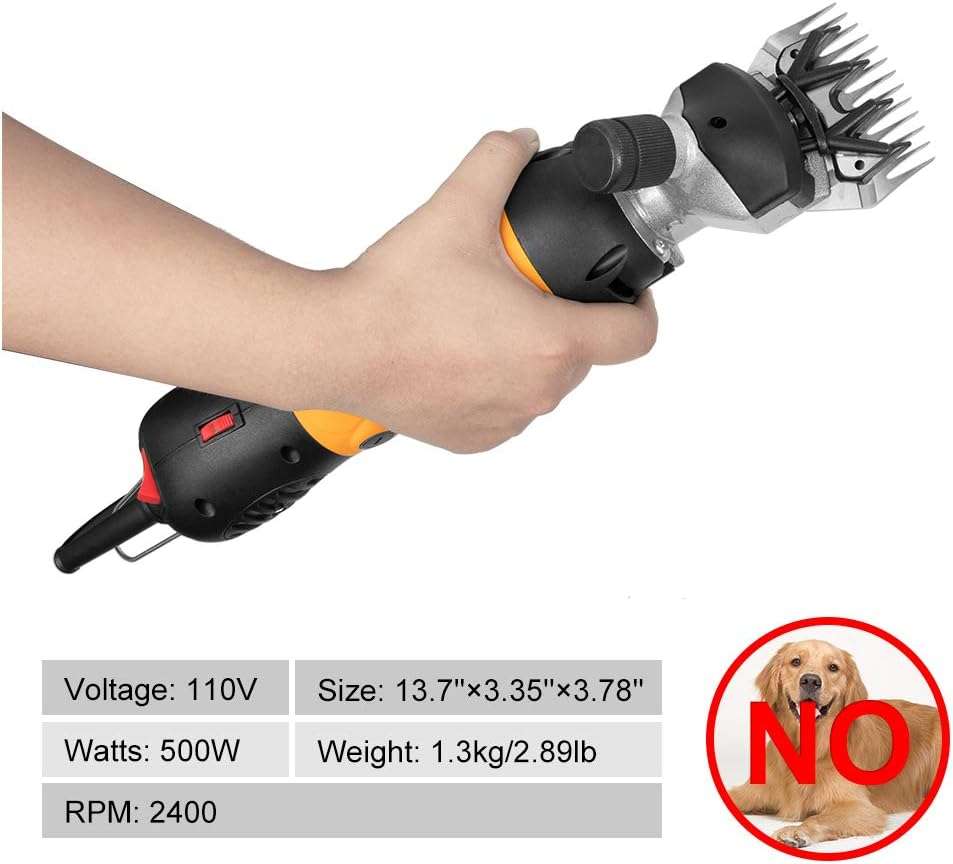 Alta Eficiencia de 500W y 2400 RPM: Equipada con una potencia de 500 vatios, esta cizalla proporciona hasta 2400 revoluciones por minuto. Esta fuerza mejora significativamente la eficiencia, haciendo que el trabajo de esquilar ovejas, cabras, llamas y alpacas sea mucho mas facil y rapido que con maquinas estandar.