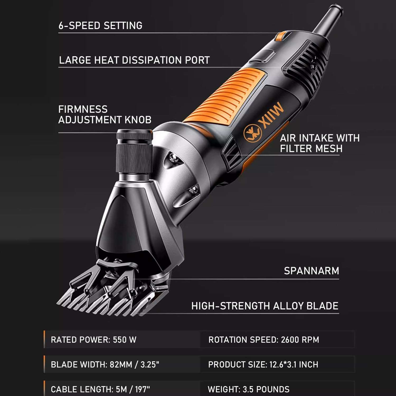 Esta maquina esquiladora de alta potencia esta diseñada para cortar capas gruesas y enmarañadas sin esfuerzo. Con un motor de 550W y un cable extra largo, ofrece la libertad y eficiencia que necesita para el trabajo con ganado.