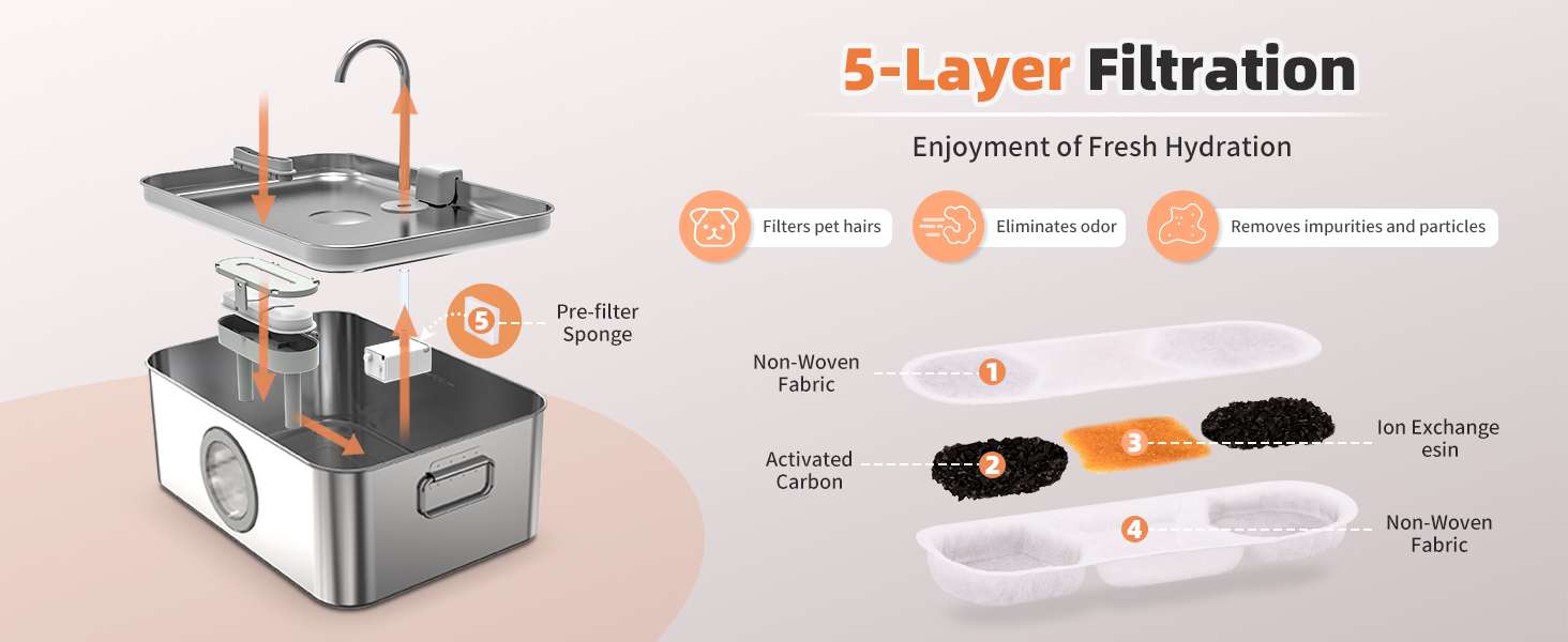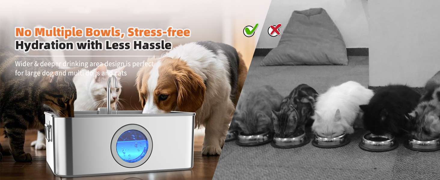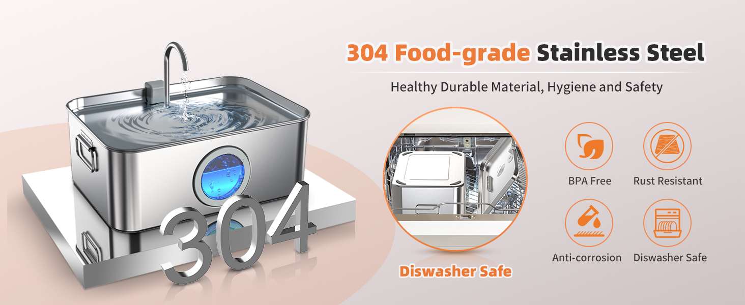 Fabricada en Acero Inoxidable SUS304 de alta calidad, es resistente a la corrosión, duradera y apta para lavavajillas. Su diseño incluye un grifo que crea dos experiencias: una cascada natural ideal para que los perros beban a grandes tragos y un modo grifo que atrae a los gatos. Todo esto mantenido impecable por un sistema de filtración de 4 etapas que elimina pelos y suciedad.
