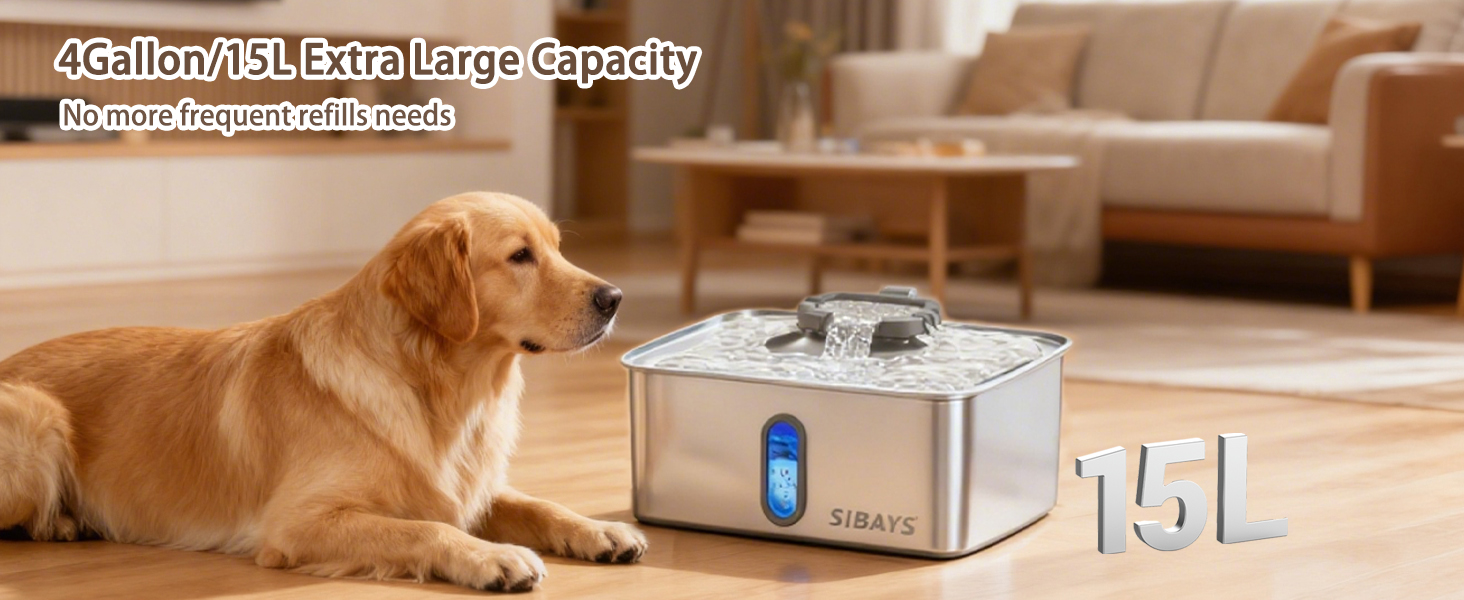 Capacidad Gigante: Tanque de 15 Litros (4 galones) que asegura hidratación por hasta 15 días, ideal para hogares con múltiples mascotas o perros de raza grande.