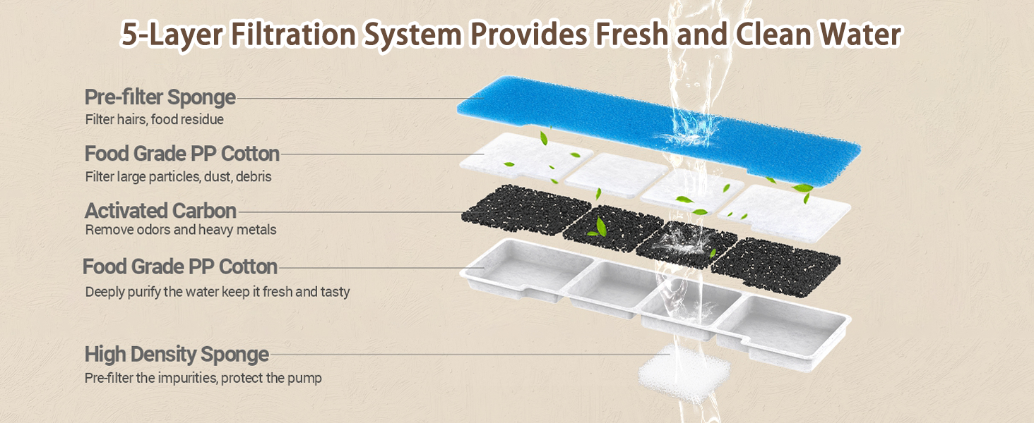 Filtración de 5 Capas: Sistema avanzado con carbón activado de cáscara de coco y esponja de alta densidad que elimina pelos, residuos, metales pesados y malos olores.
