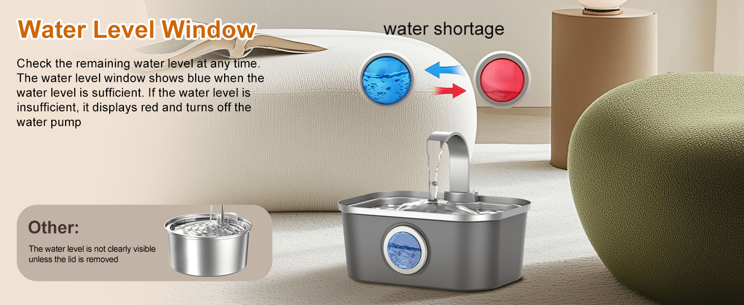 Hemos solucionado el mayor problema de las fuentes de acero inoxidable: la falta de visibilidad. Este modelo patentado incorpora una ventana transparente con luz LED en su cuerpo de Acero Inoxidable 304. Ahora puedes disfrutar de la máxima higiene y durabilidad del metal (un 30% más grueso que el estándar) y saber exactamente cuándo rellenar el tanque de un solo vistazo, sin tener que desmontar nada.