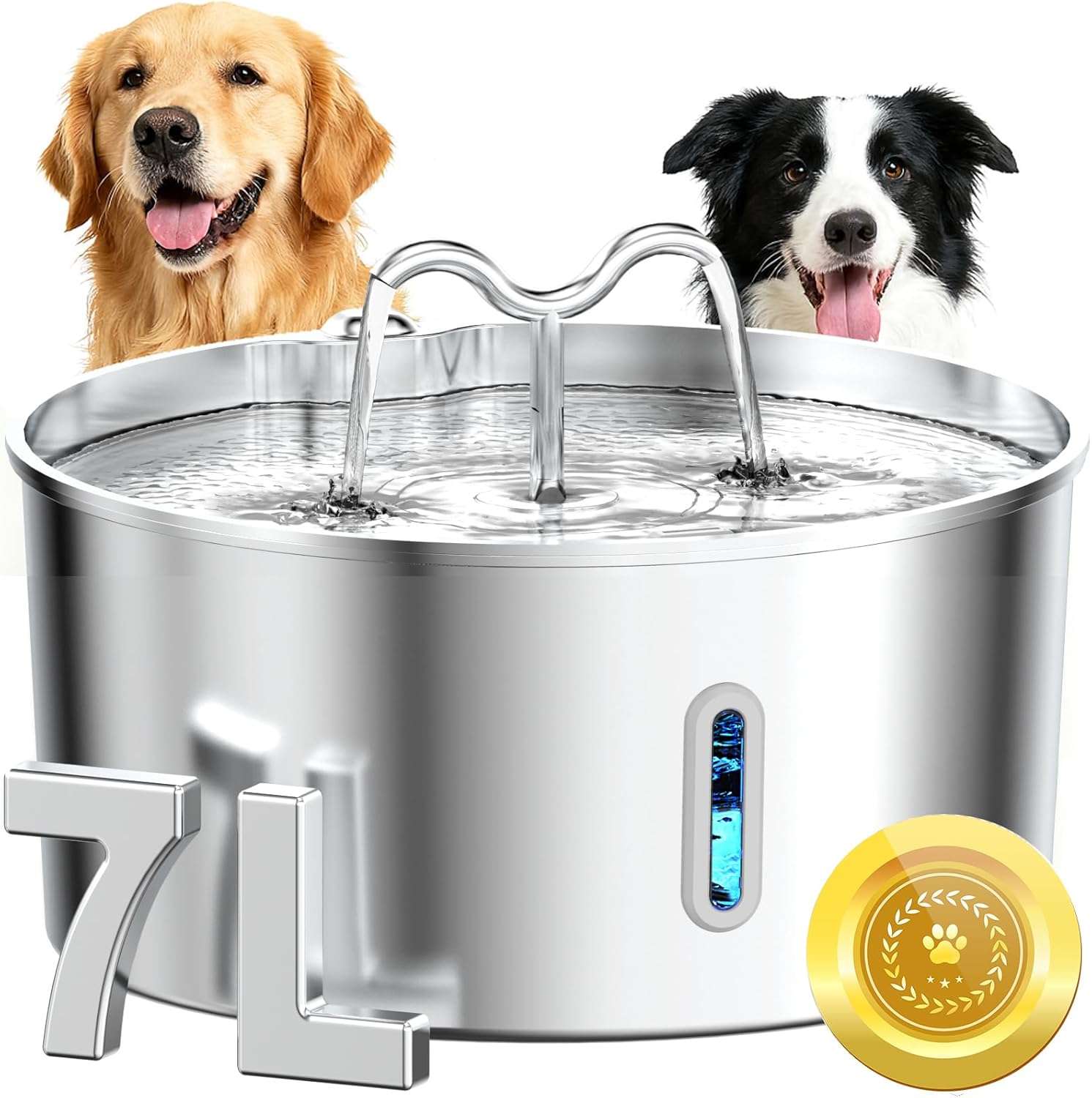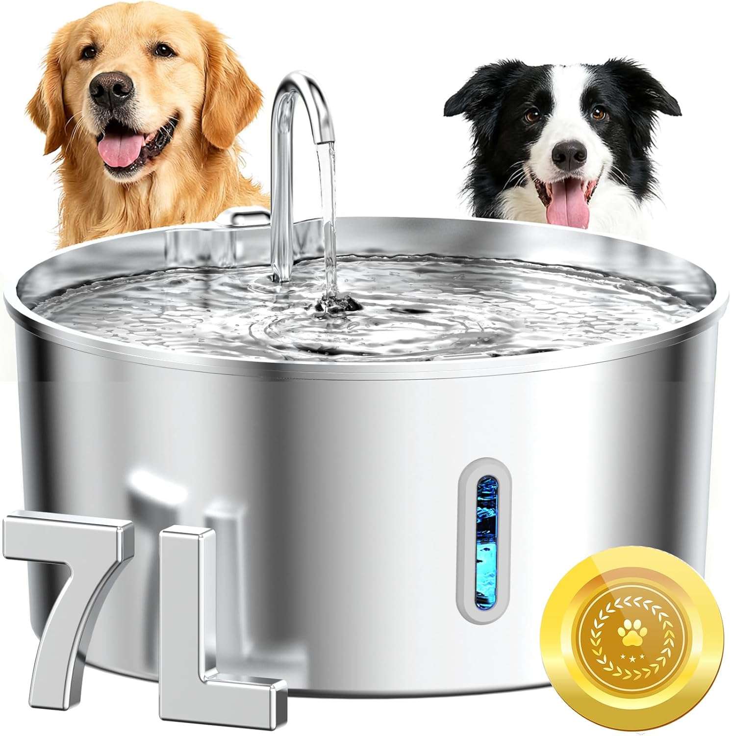 Diseñada pensando en las necesidades reales de los perros grandes y hogares con múltiples mascotas. Su enorme tanque de 7 Litros (236 onzas) garantiza un suministro de agua fresca durante días. Ya sea que tengas un día largo en el trabajo o salgas de viaje corto, tendrás la tranquilidad de saber que tus mascotas nunca pasarán sed.