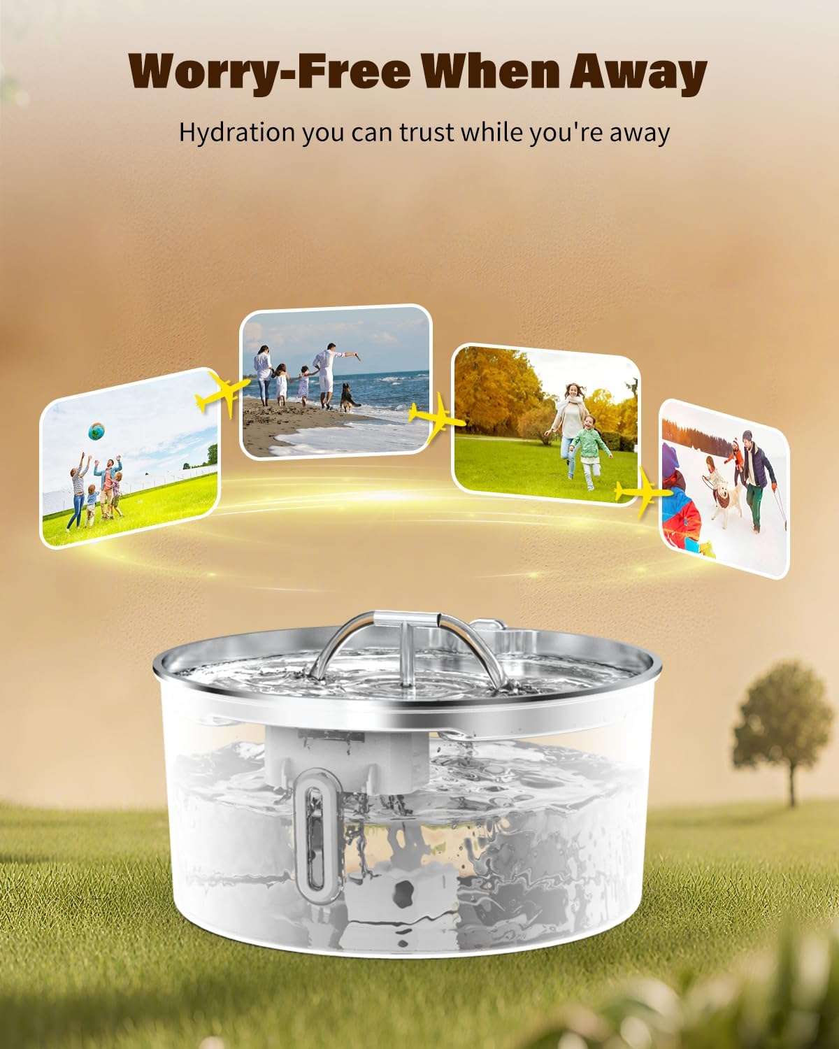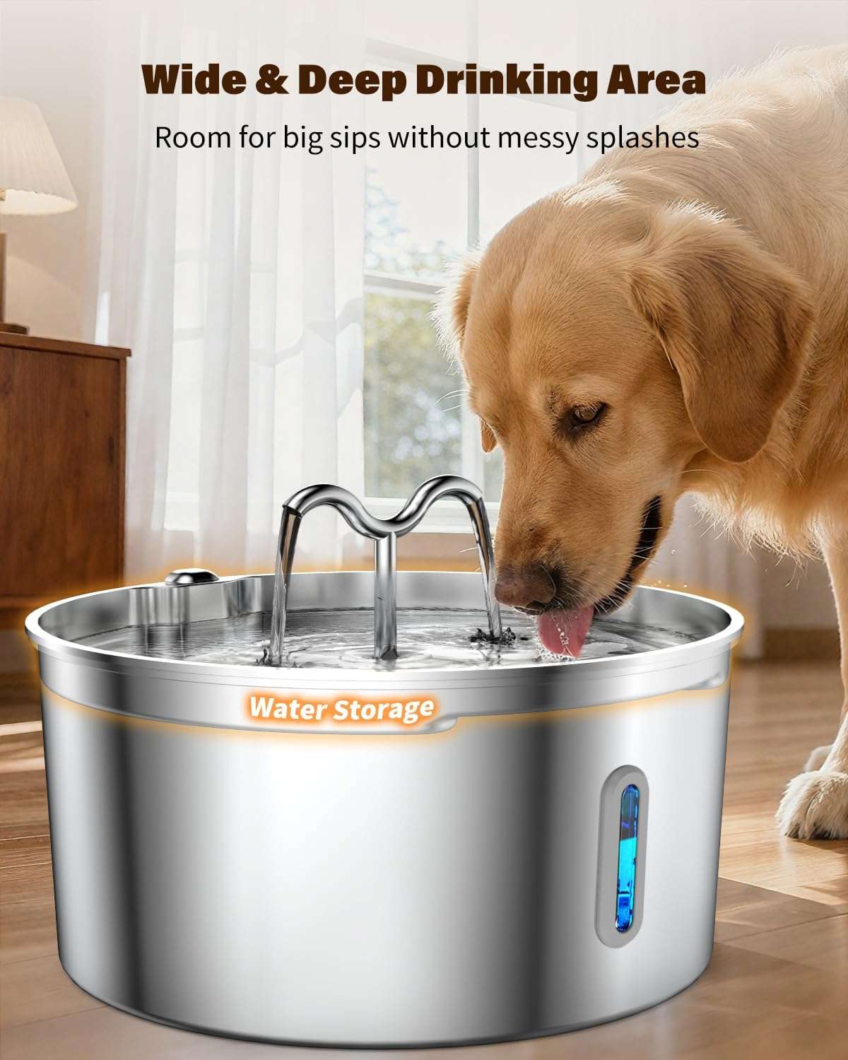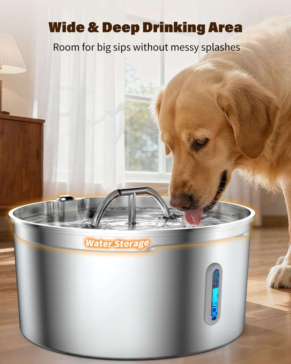 Combinamos la máxima higiene con la practicidad. Fabricada en Acero Inoxidable SUS 304, esta fuente es resistente al óxido, libre de bacterias y mucho más segura que los platos de plástico. A diferencia de otros modelos metálicos, este incluye una ventana de nivel visible, permitiéndote verificar cuánta agua queda de un solo vistazo sin tener que abrir la tapa.