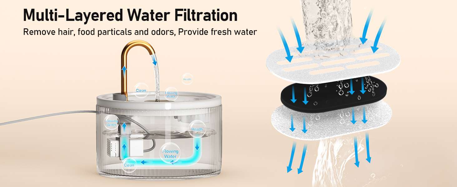 Modo Fuente de Burbujas: Perfecto para mascotas que prefieren un flujo suave en la superficie. Este movimiento dinámico atrae su curiosidad, incentivándolos a beber más agua para prevenir enfermedades renales y urinarias.