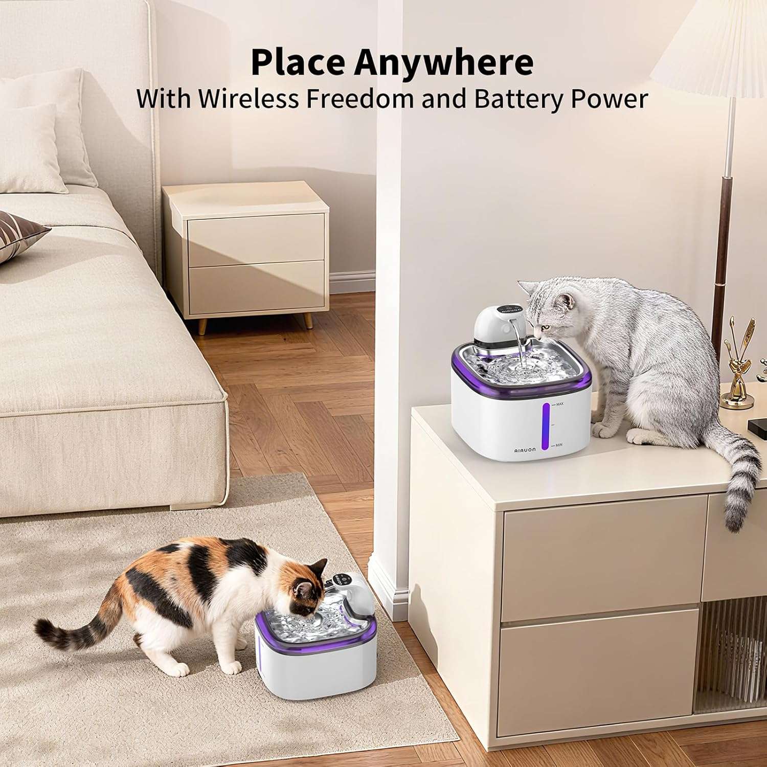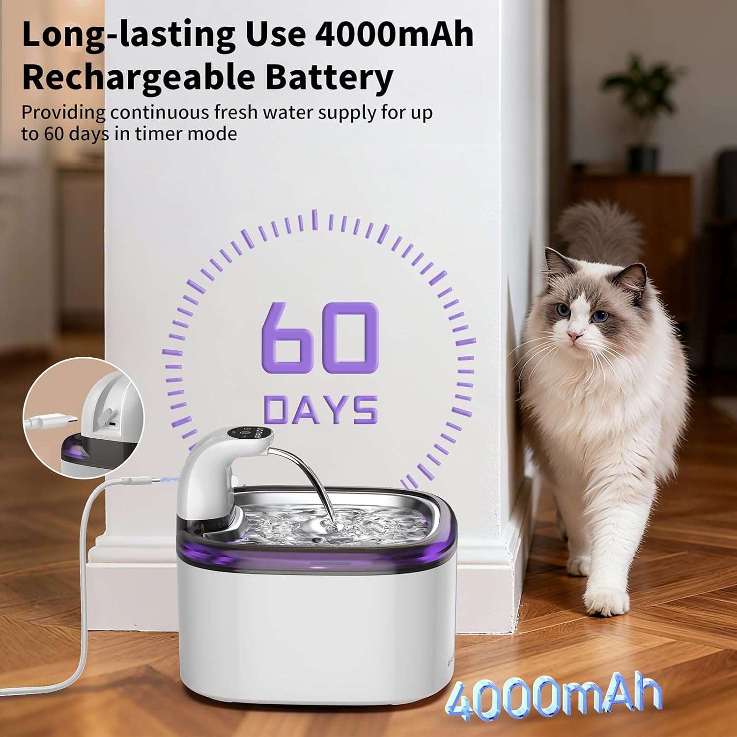 Disfruta de la máxima comodidad con esta fuente equipada con una potente batería de 4000 mAh. Olvídate de los enchufes y coloca el bebedero donde tu gato o perro se sienta más cómodo. Además, este modelo es una inversión inteligente: incluimos 8 filtros de repuesto, 5 esponjas y herramientas de limpieza, garantizando meses de agua pura sin gastos extra.
