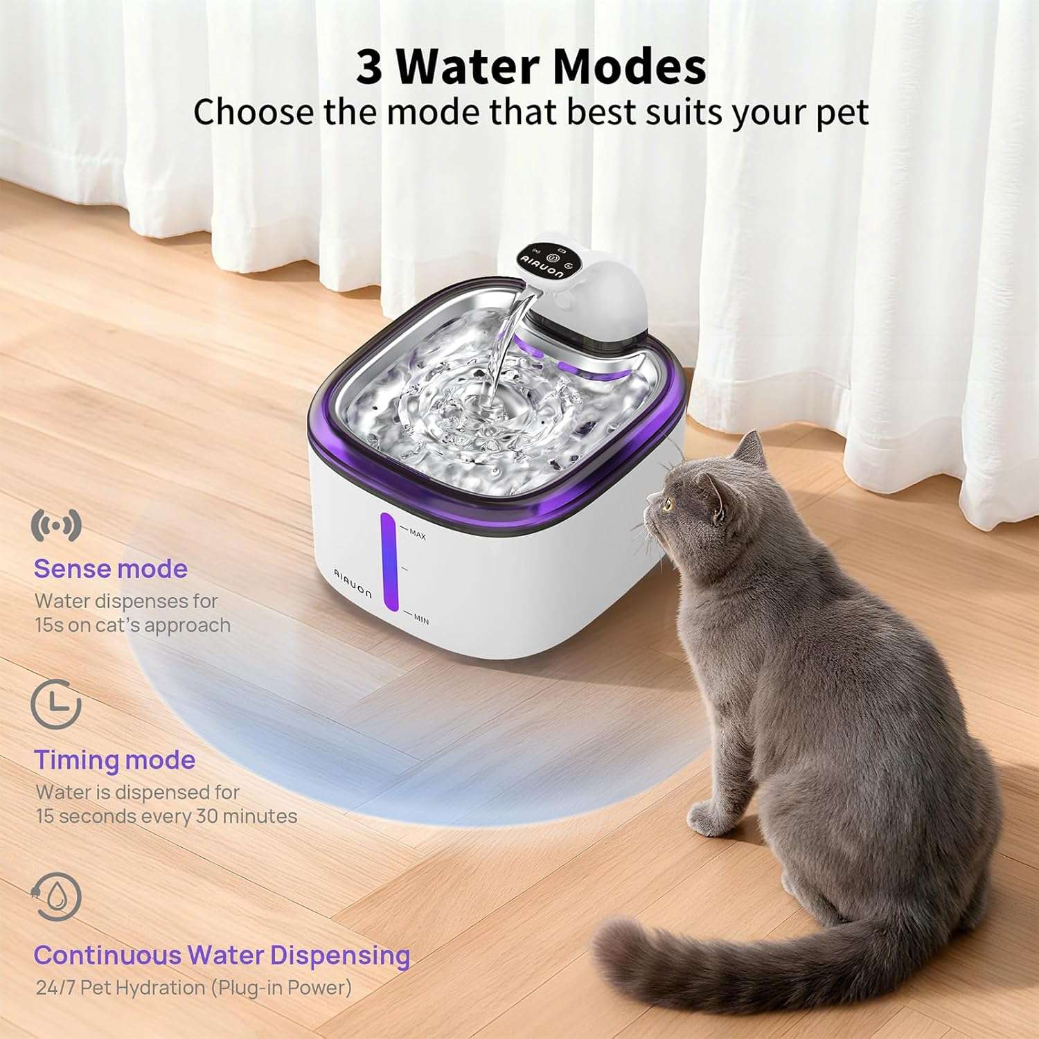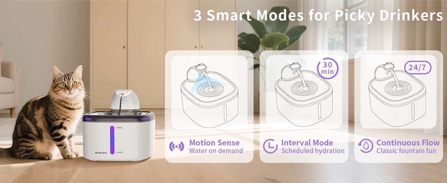 Modo Sensor: El agua fluye solo cuando tu mascota se acerca (ahorro máximo de batería).
