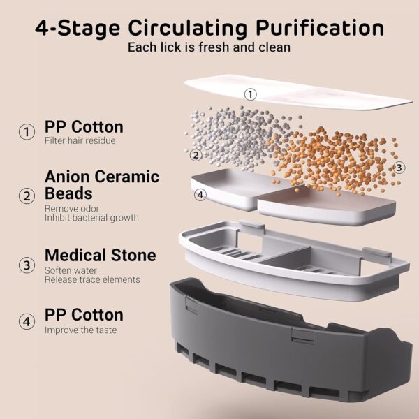Cada lamido es fresco y limpio: el sistema higiénico de filtración circulante de 4 etapas proporciona una cascada saludable, fresca y enriquecida con oxígeno.
