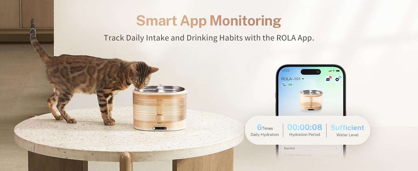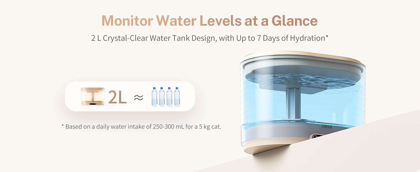 Con un tanque de 2 Litros, ofrece el volumen ideal para mantener el agua fresca y en movimiento para uno o dos gatos exigentes. La bandeja de bebida es de Acero Inoxidable 304, el material más higiénico y recomendado por veterinarios. Además, la tecnología magnética asegura un funcionamiento ultra silencioso, para que la tecnología se sienta, pero no se escuche.