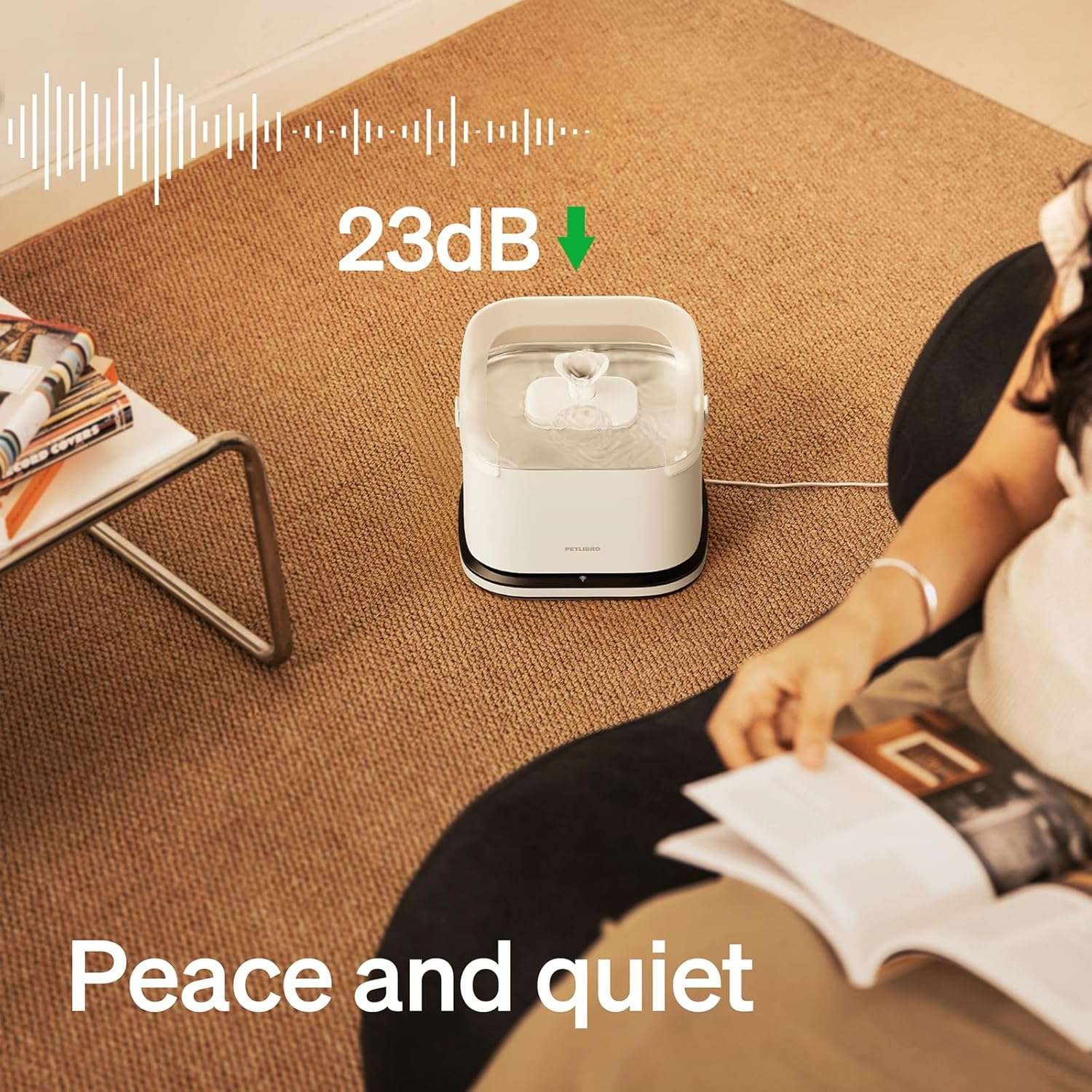 Filtro de Cuatro Capas y Acero Inoxidable Agua siempre pura fresca y silenciosa. Su sistema de filtracion de cuatro niveles elimina suciedad y metales pesados para proteger a tus mascotas. La bandeja superior esta fabricada en acero inoxidable de grado alimenticio ideal para prevenir el acne felino. Por si fuera poco funciona con un nivel de ruido apenas perceptible de 23 decibeles permitiendo que todos en casa duerman profundamente.